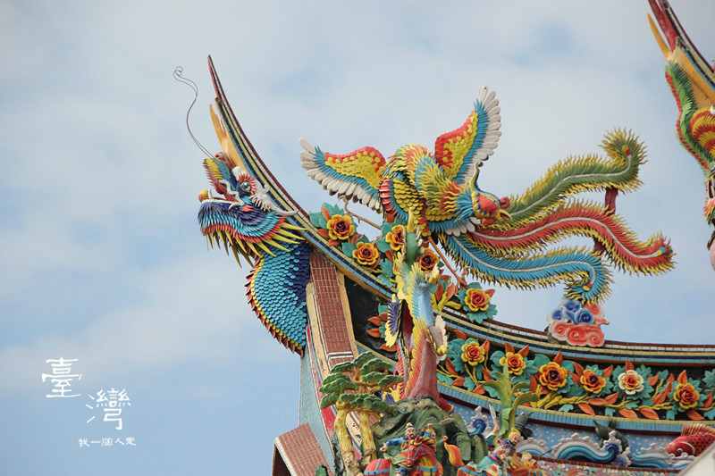 这个建筑在台湾 的每个城市都看到,好像是拜拜的地方,外面的装修都是彩色的,很有特色。