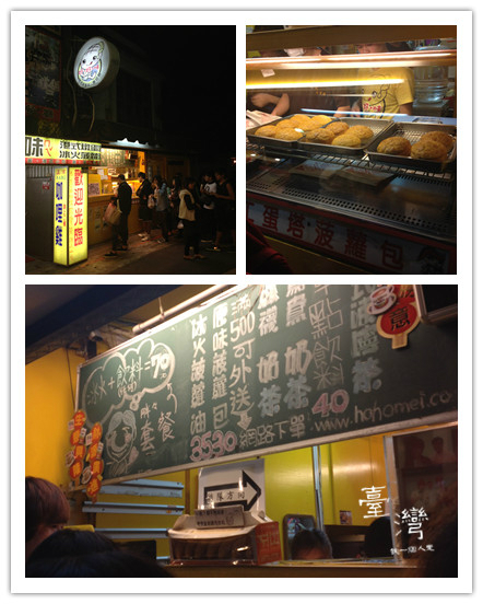 晚上去了师大夜市 ,比想象中要小,卖衣服饰品不少,吃的很少,味道还可以,逛的时候发现这个超多人排队就买来吃,结果味道一般般啊,这个叫菠萝包,据说这家店还很有名,倒是台湾 的果汁味道正宗,亲们一定要买来喝~