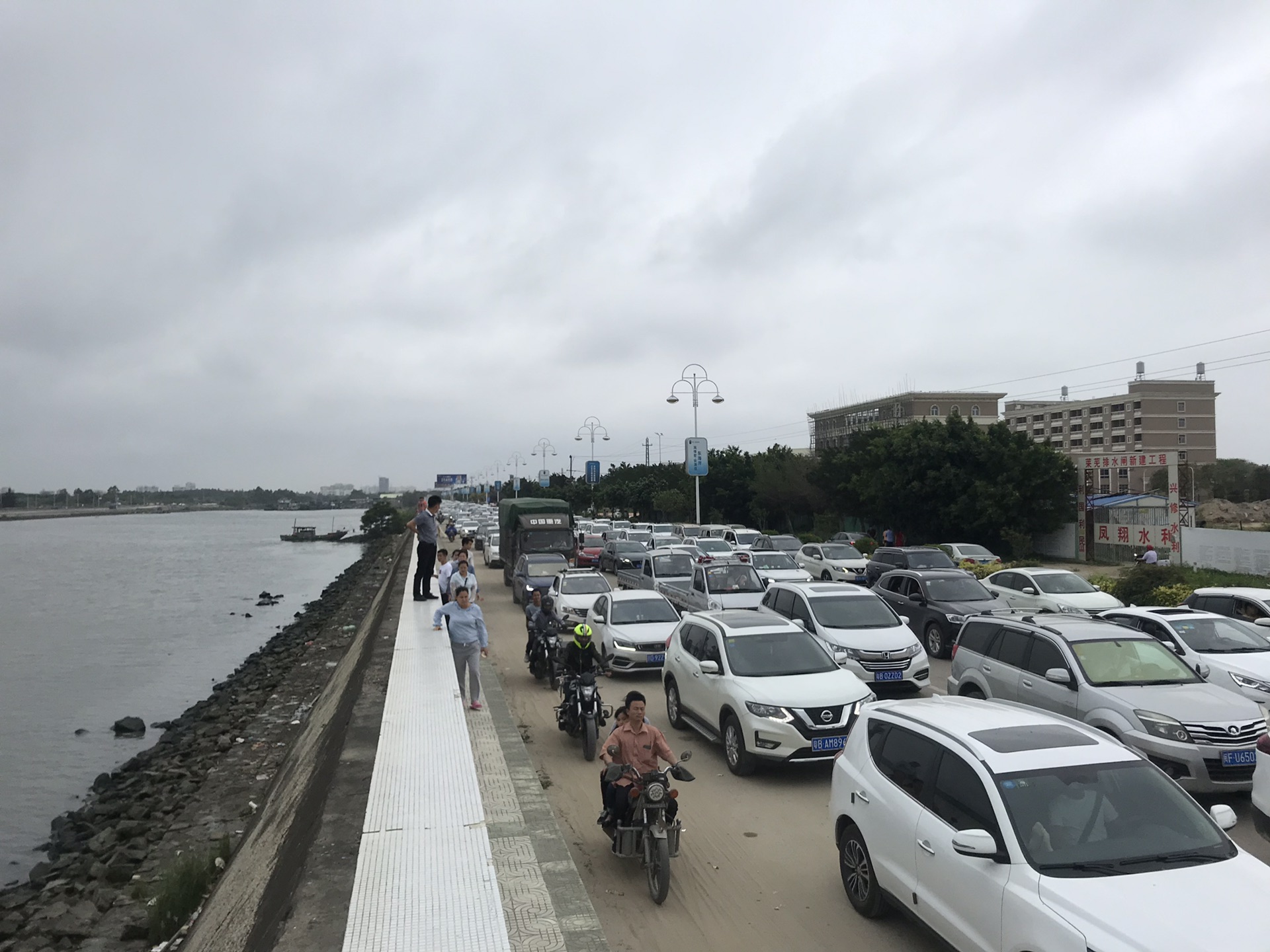 感受一下现场的人流,简直是把节假日的高速搬到了336省道,周边卖水果卤味的摊位赚的不亦乐乎