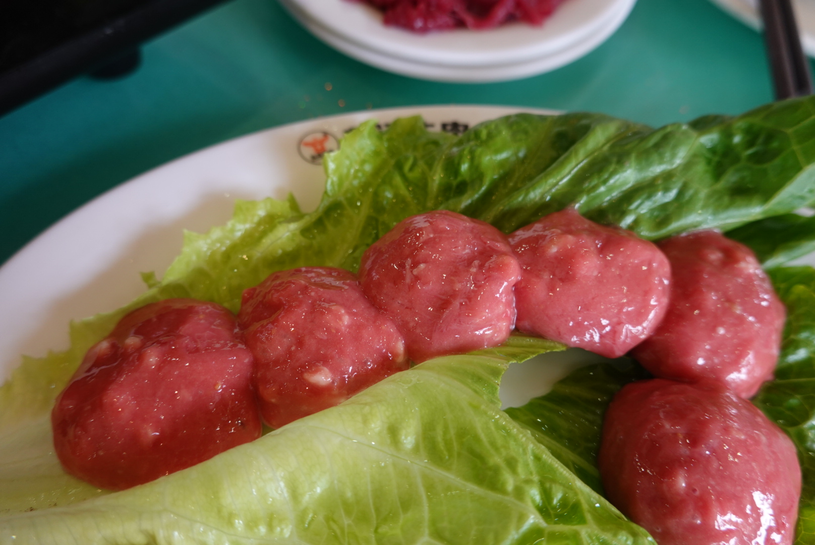 直入正题,现打手工牛肉丸,一盘六颗,都连在一起难舍难分,牛肉丸难熟,最先下锅。