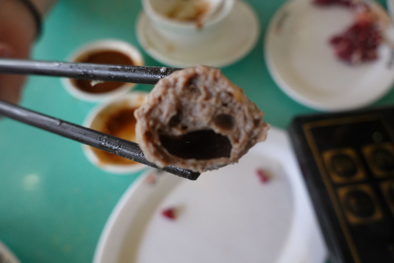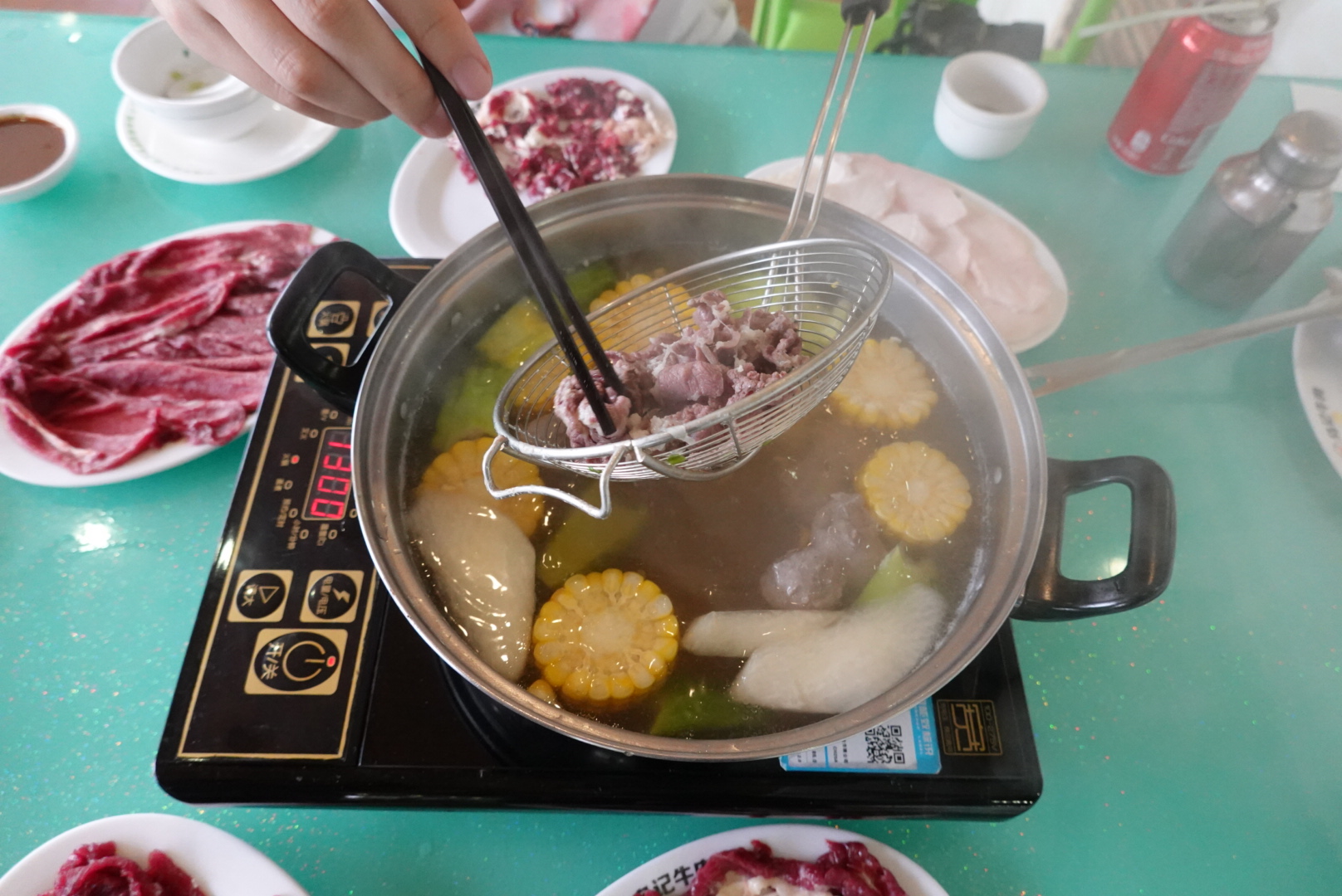 待其他的肉吃完,牛肉丸刚好熟,一口爆汁,一份不够,再来一份。