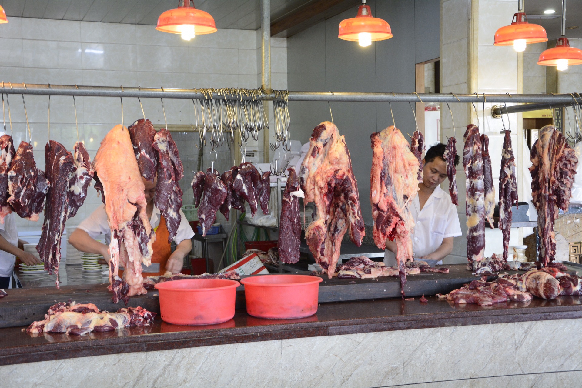 店面后面就是屠宰场,屠刀一落,牛肉上桌,完全零时差,甚至可以看到牛肉在跳动。