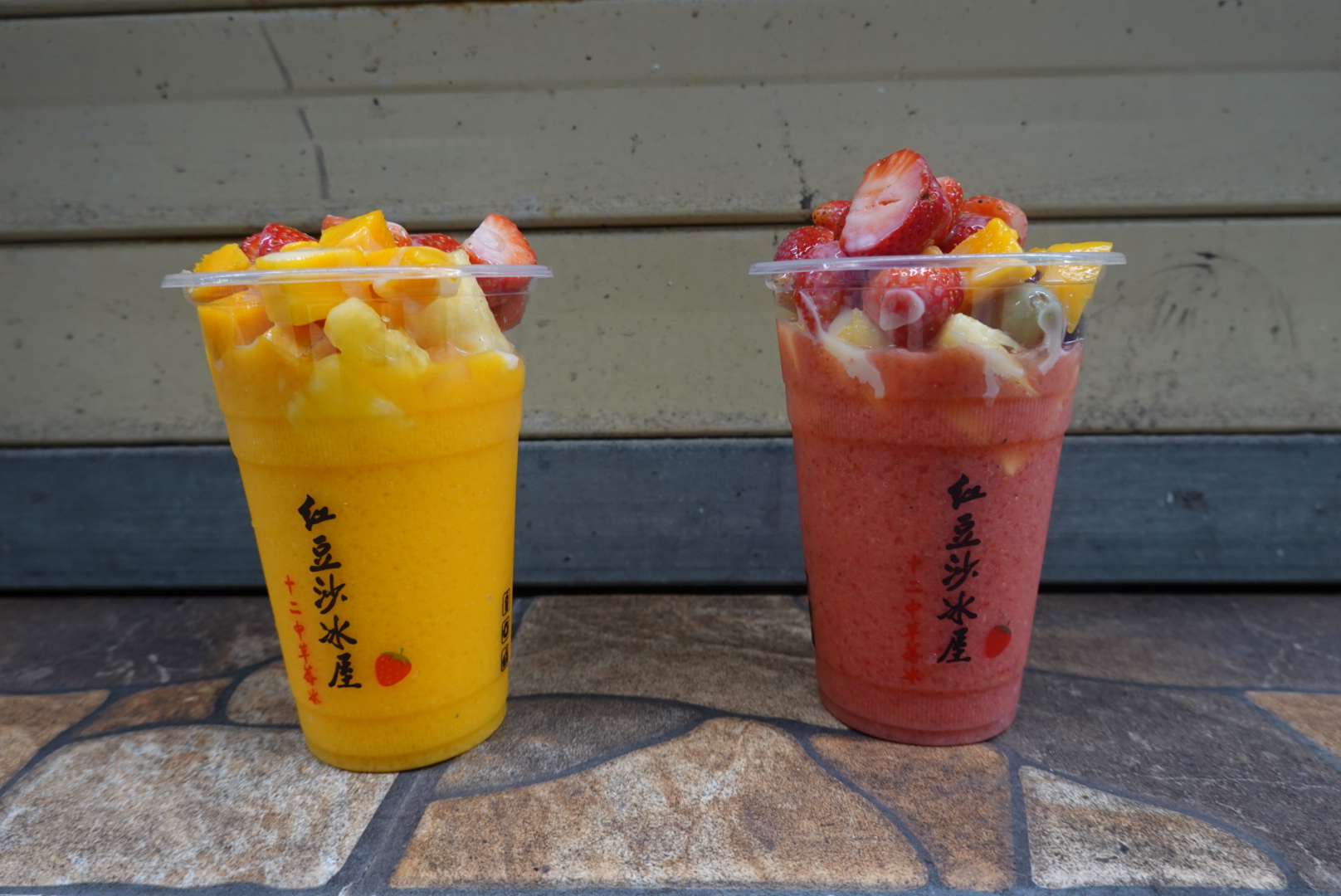 点了草莓冰和芒果冰,老板说这个季节草莓不多了,所有加了点其他的果肉,anyway,味道是很不错,特别是配合汕头白天炎热的天气,吃下去很爽,但我感觉太甜了,应该是加了香精或者其他甜味剂。