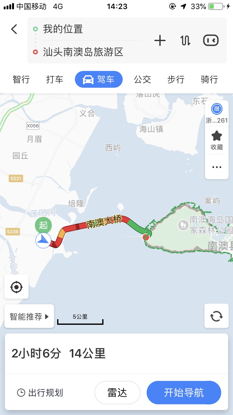 接下来就是今天的重头戏,南澳岛了,没想到一导航傻眼了,进岛短短十几公里的路,竟然堵成了草莓冰的颜色。