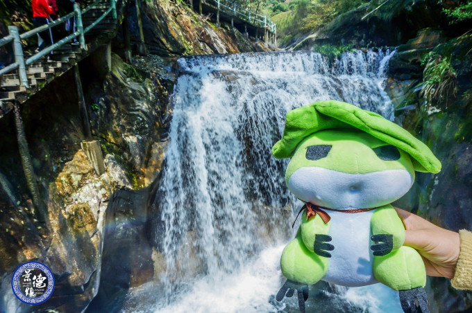 ▲在瑶里古镇汪湖的瀑布旁,邂逅一道彩虹