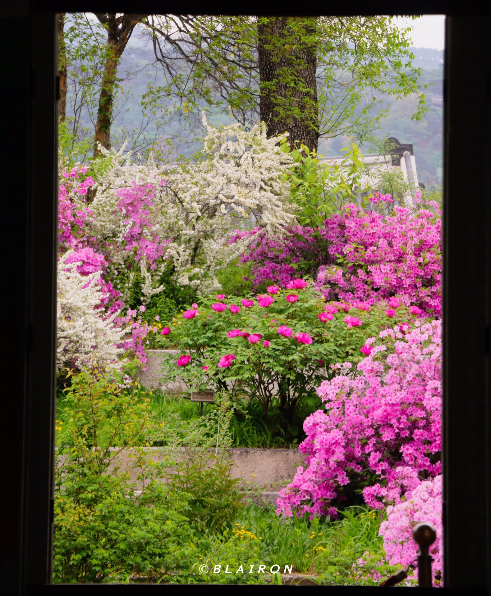 春日正盛,抽了芽的嫩绿和桃红粉黛相映衬。