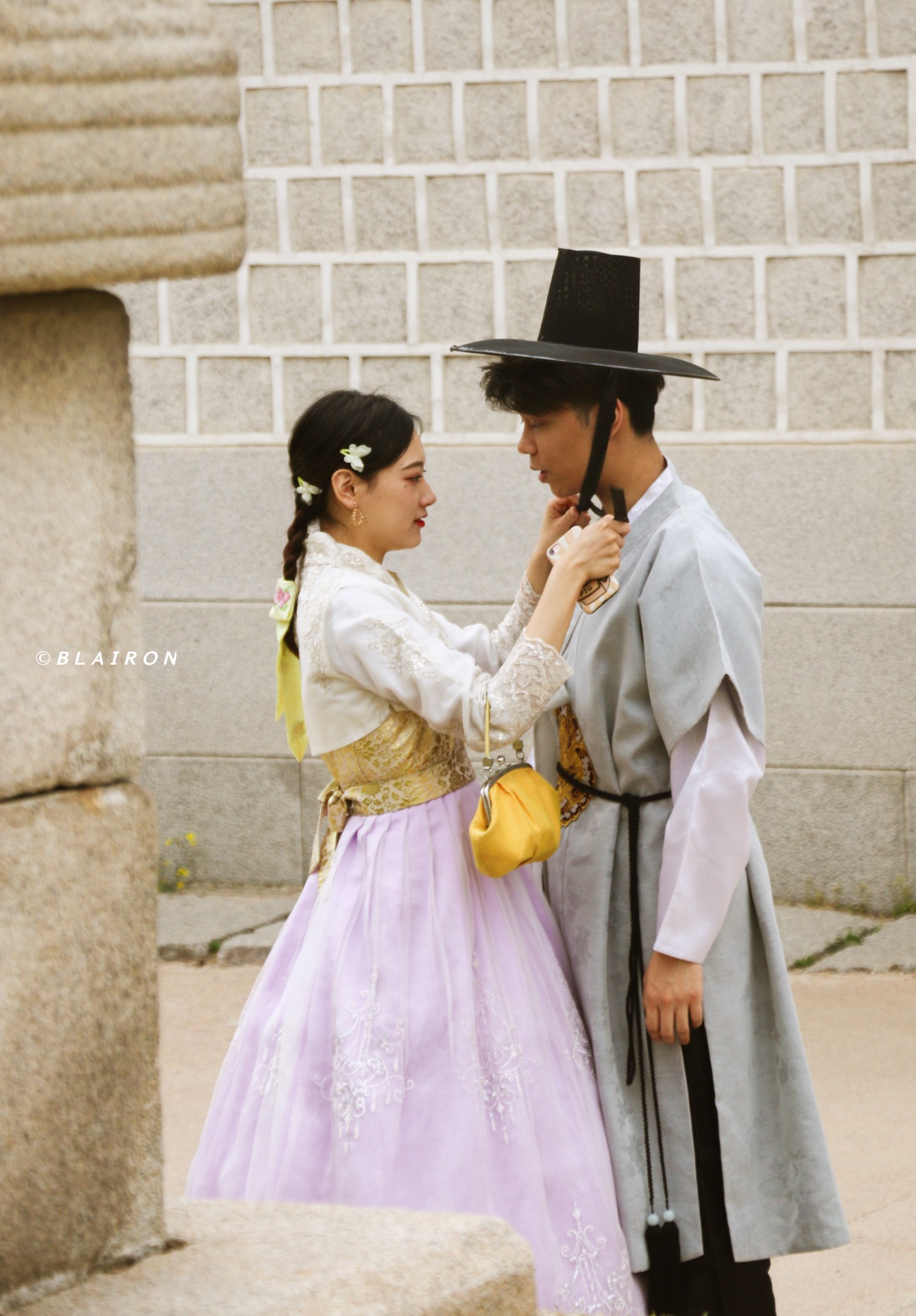 闺蜜选择的是非常大家闺秀的粉色韩服,很适合她温婉的气质。
