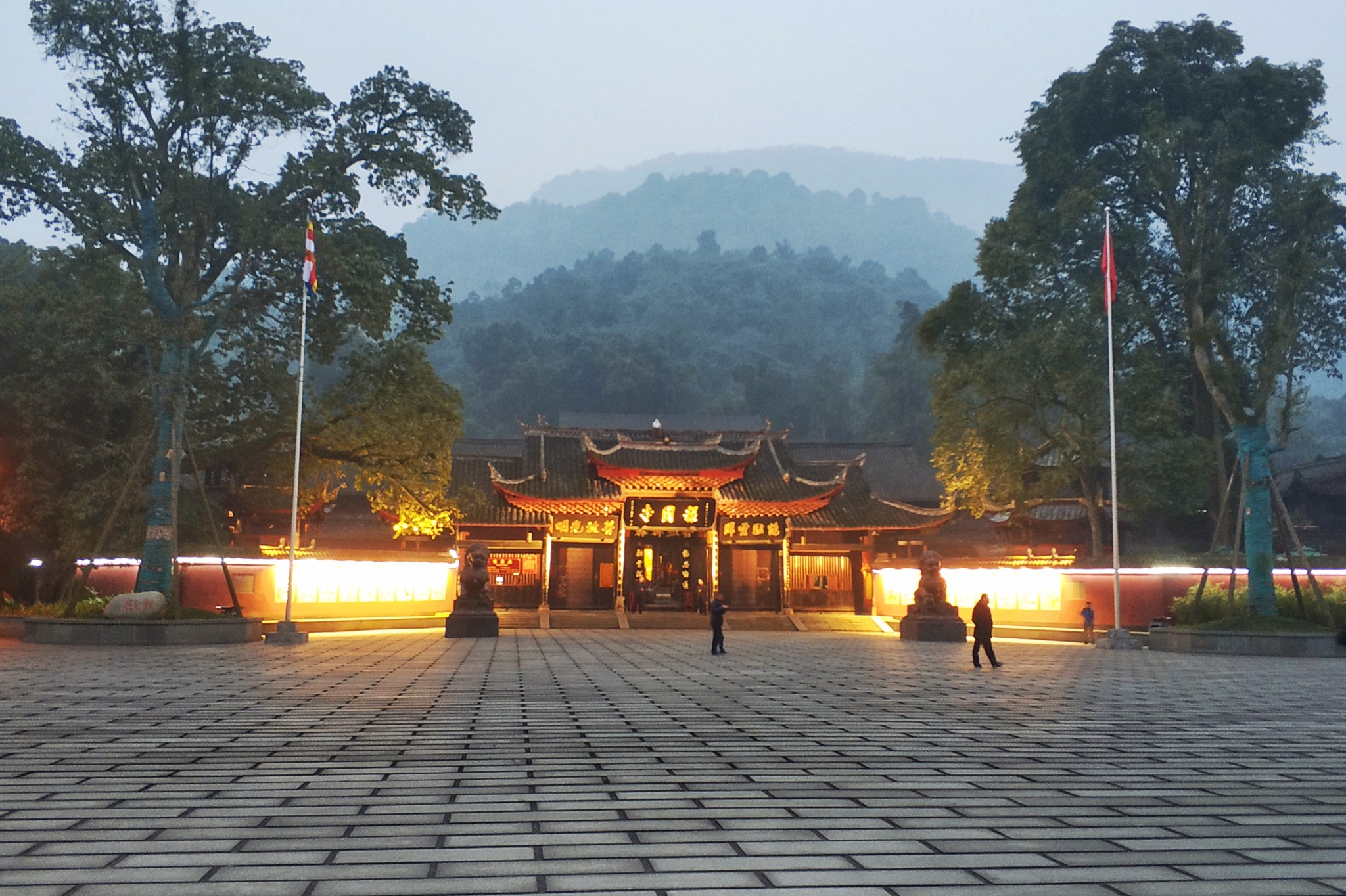 零时安睡,六点洗漱,七点造饭,七点五十天还蒙蒙亮呢,伴随着报国寺低沉浑厚的钟声、僧侣们虔诚整齐的诵经声,我们已经来到的寺前广场。