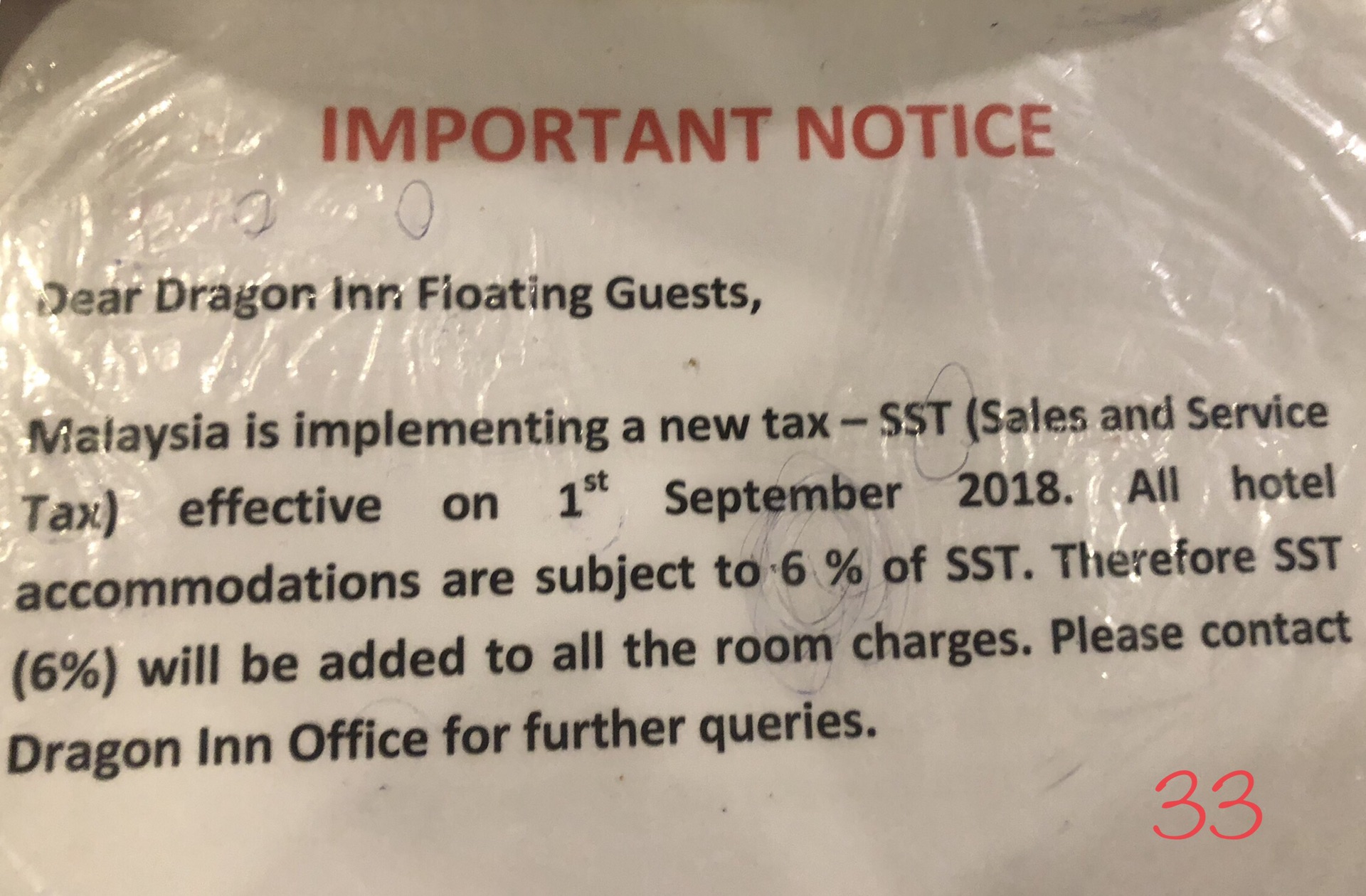 而且所有度假村旺季(暑期7.1-8.31,十一,春节)涨价10%,退房时加收10马币税(新政策)