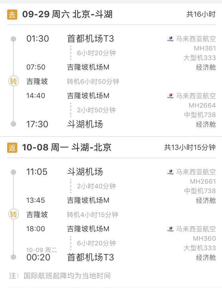 害怕十一小长假机票飞涨,提前半年定了机票,但现实又给了我一棒槌,我们刚买完4100的北京飞斗湖的往返机票就落价了,3500就能轻松拿下。哎,心情跌荡起伏,所以,经验告诉你们北京4000的机票不算便宜!3000才是王道!