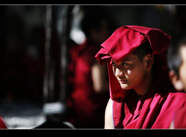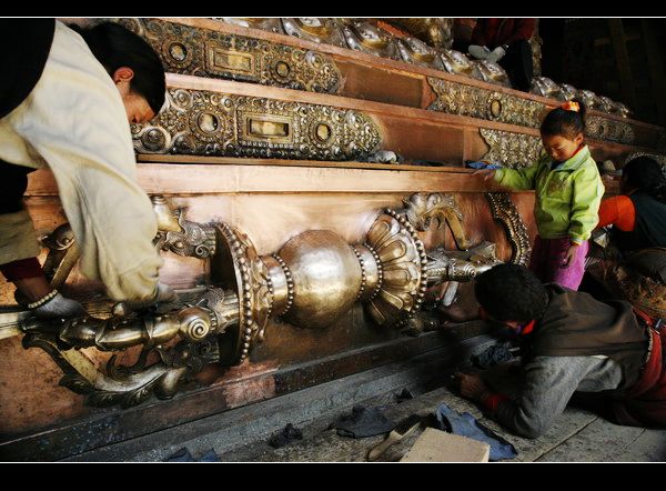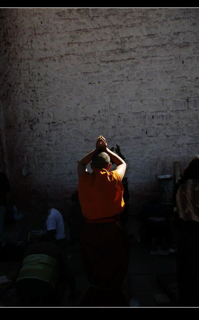 清晨去山头拍完桑寺的全景,赶上了僧人上早课,大殿一个游人也没有,在最后一排席地而坐,听着他们诵经,偶尔的鼓点声,象小锤子一样敲打在自己的心里,心潮澎湃~~