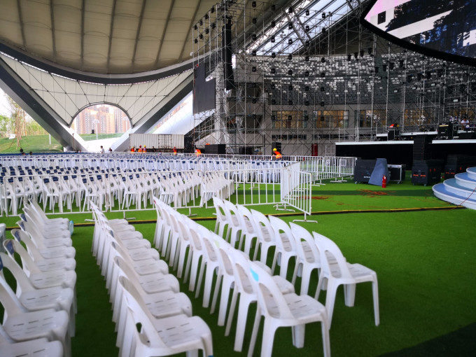 白色椅子是A区。(数了数,前场大约8000个座位。