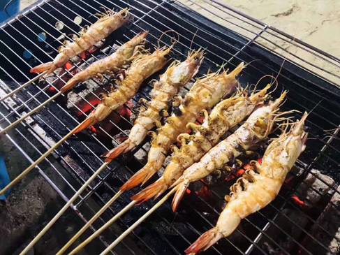 我们钓完鱿鱼回来就在Ben沙滩烧烤。(Ben真的很细心了)食材的话是我们提前在微信确定好,我们一回来他就安排人帮我们的食材烧烤炉准备好了,我们下船就可以带上我们刚刚钓回来的鱿鱼跟提前准备好的海鲜一起烧烤了,海边烧烤正式开始了