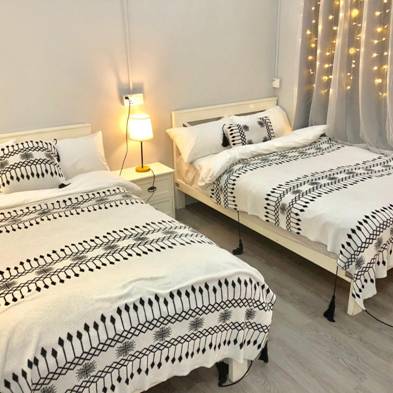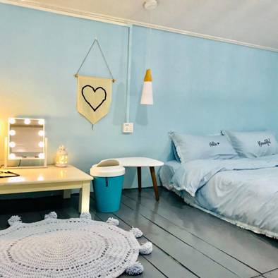 我们怕堵车早上7点多点出发的,一路挺通畅的,没有出现堵车的现象。晃晃悠悠的就到了客栈。客栈风格小清醒为主,房间内饰blingbling的,各种风格都有。我们住的是ins风格的。花花(我的朋友)一到客栈叫着:“哇!好美呀老板!我太喜欢了!你知道吗?我一开始想着是不是我同事美颜过度了,把你们的房间拍那么好看。不说了不说了,让我先拍拍拍拍,别等会儿被我们弄乱了”花花一进门就兴奋的狂拍。