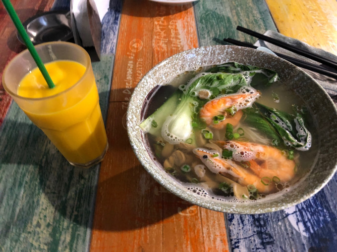 今天状态非常好,能见度也还不错,潜水结束的时候我跟小buddy一起约了先回去洗漱,完事之后在潜店的凉亭等着,一起去海边逛逛买榴莲水果吃。