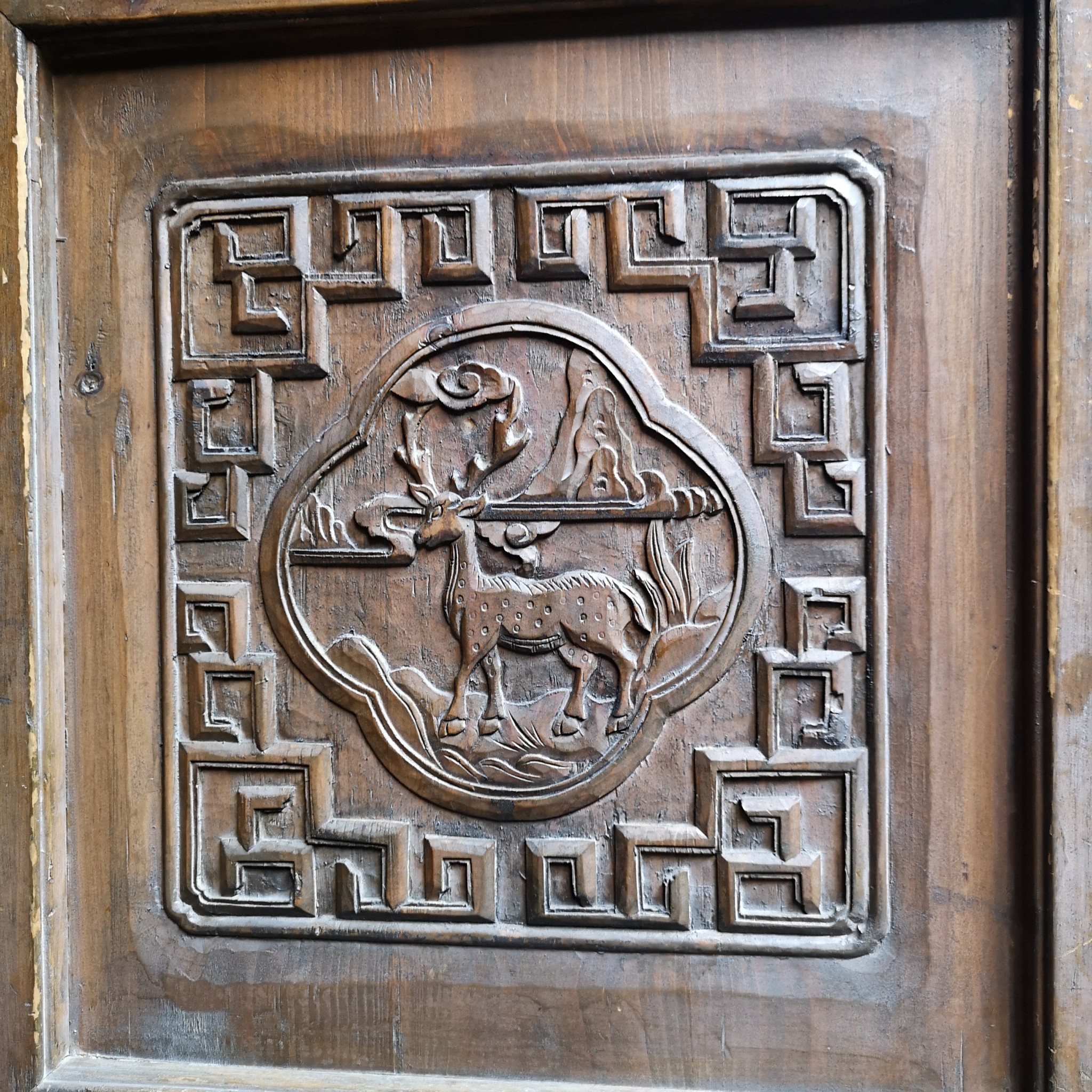 看,瓦当上都有禄字和鹿,门上也雕刻有鹿,鹿同禄也。