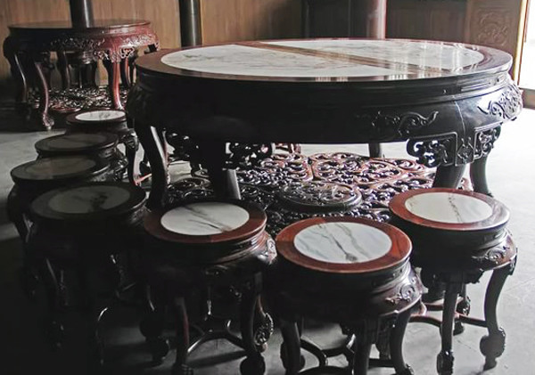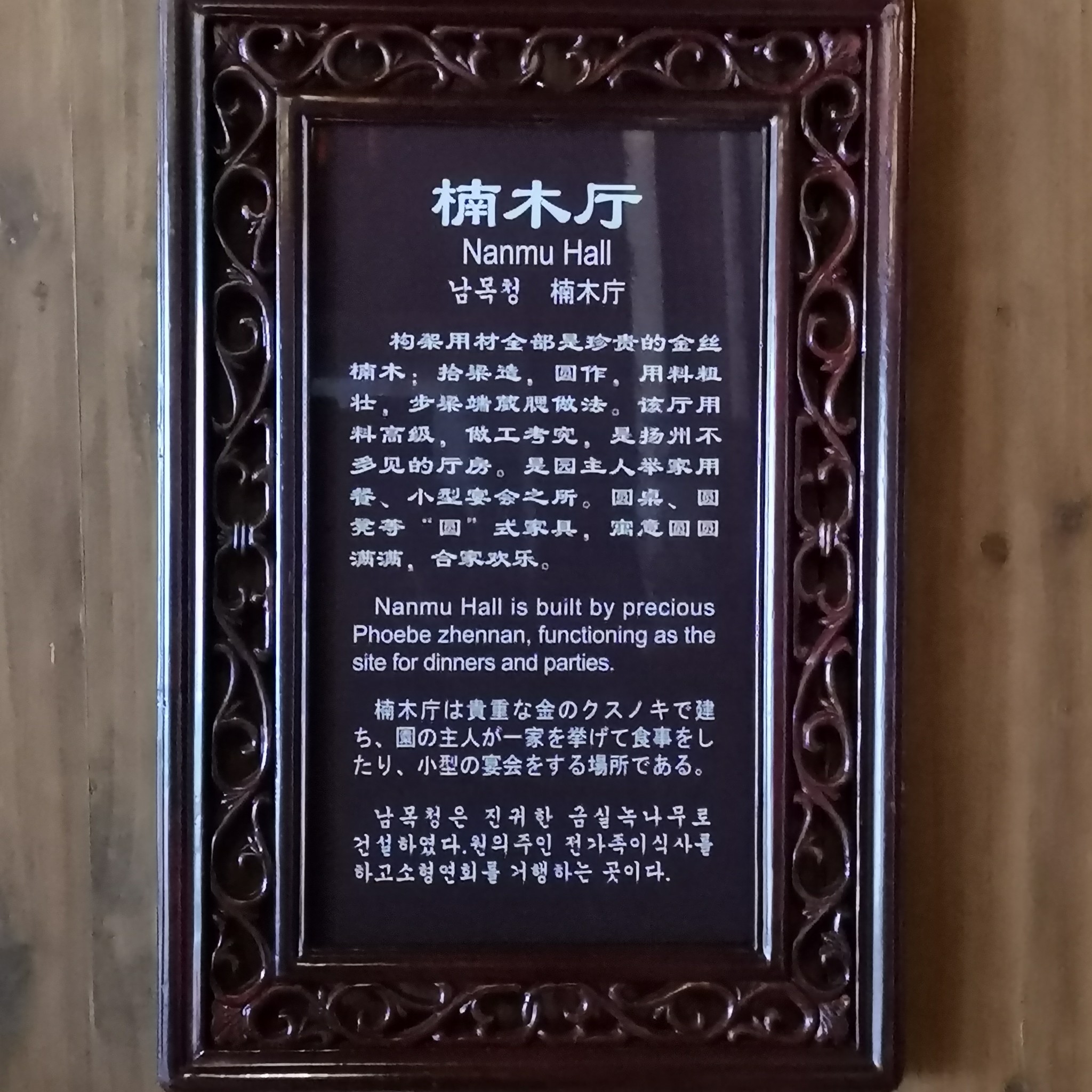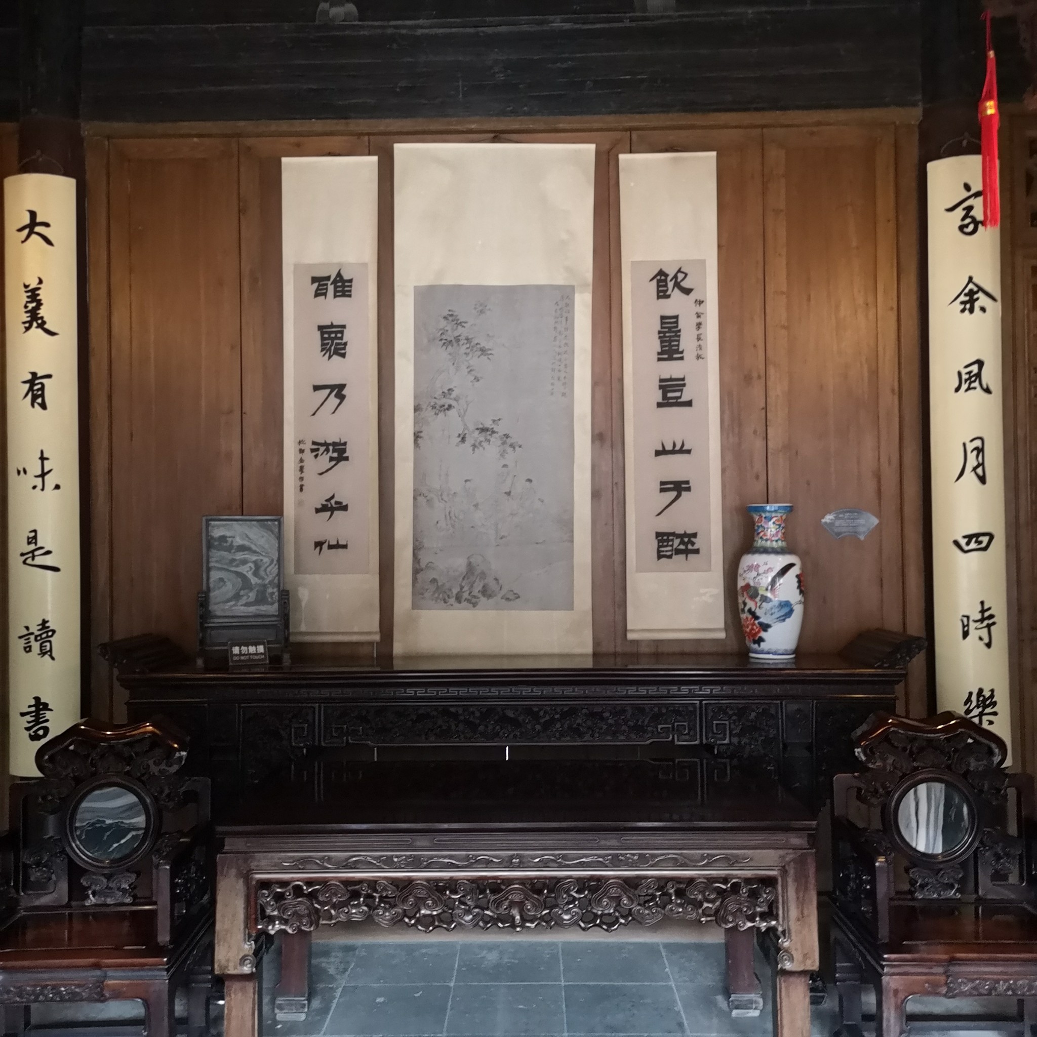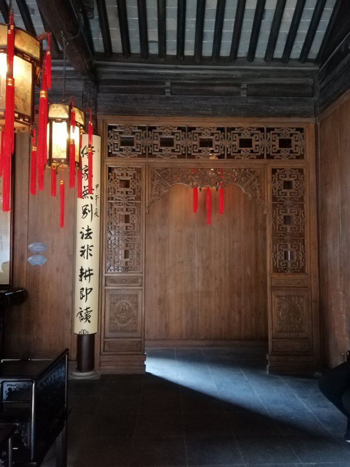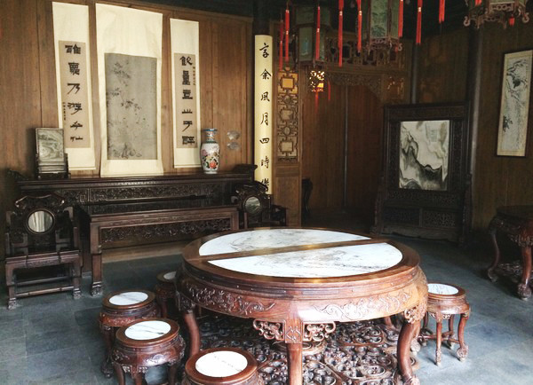 东路第二进,楠木厅,是主人举行小型宴会的地方,也是园主摆富的一个场所,厅内放置的家具相当讲究。