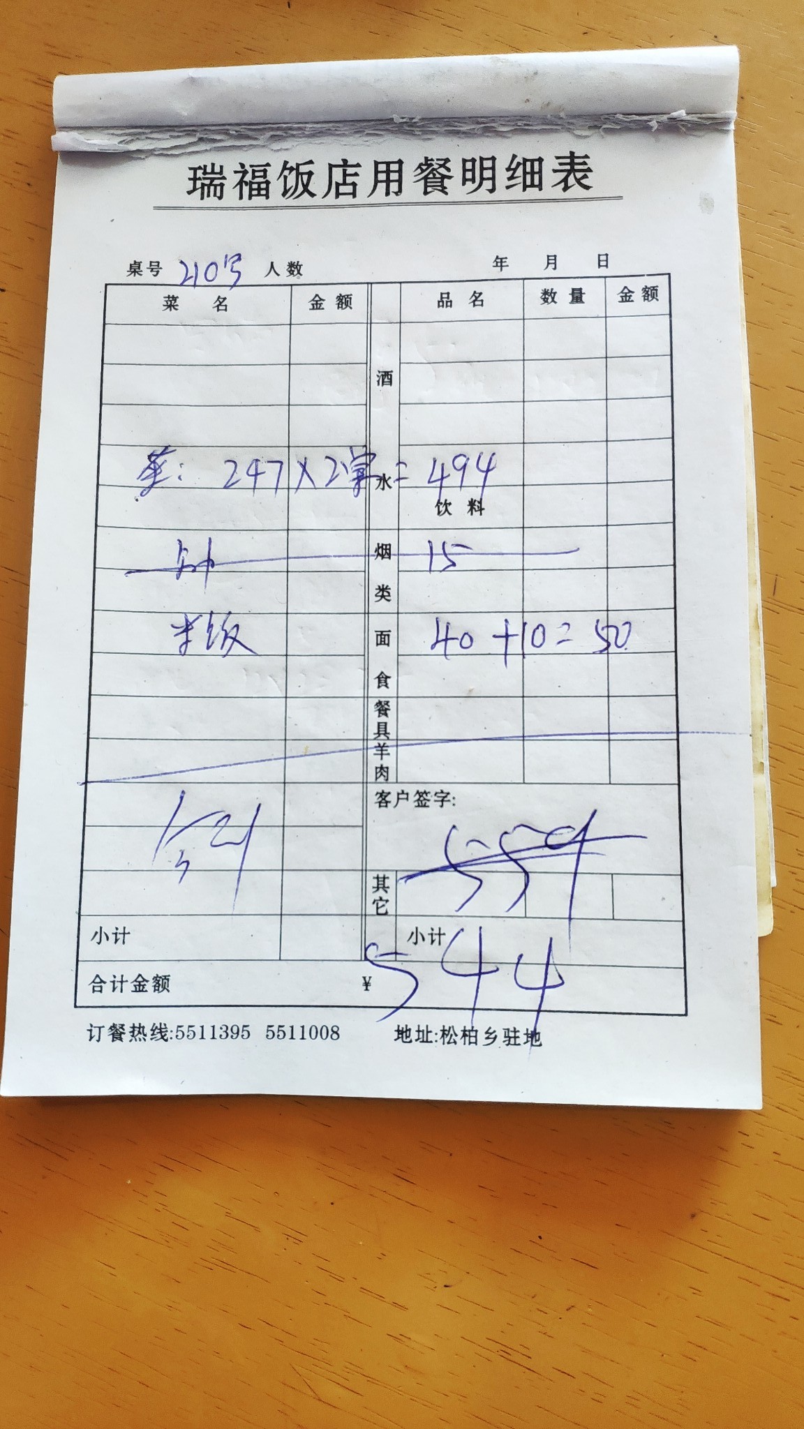 两桌花了540,一开始老板还想收我一次性餐巾费,我说没有用,他就划掉写了新价格,不知道是不是故意的。