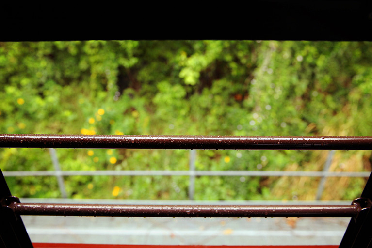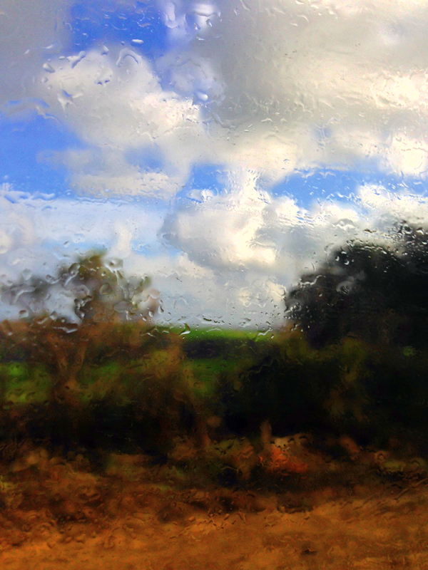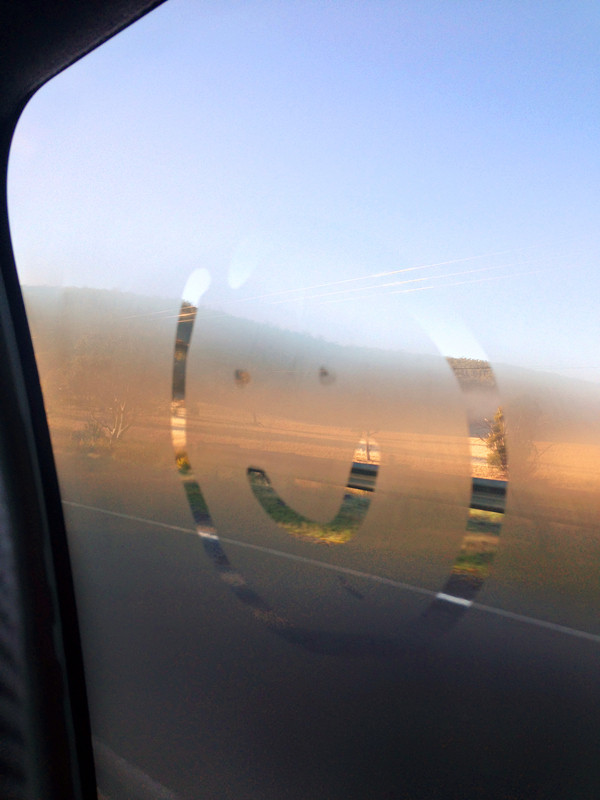 然后奇迹真的出现了!!快到十二门徒的时候,头顶那一片天竟然放晴了,瞧车窗玻璃上还尽是雨滴留下的痕迹: