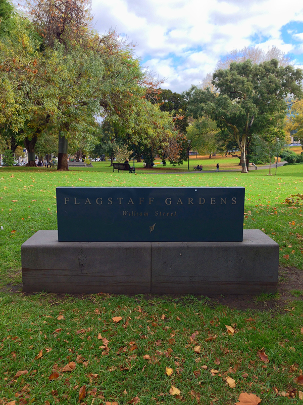 下午1点大巴士准时把我们送回市区,因为要去Queen Victoria Market转转于是就近下车了。路上看到这个Flagstaff Gardens。我对Flagstaff这个词有着深厚的感情。