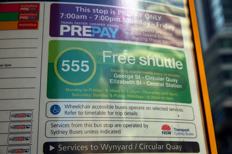 今天搭了回悉尼 市中心的免费shuttle bus:555路 个人觉得还是很方便哒~~
