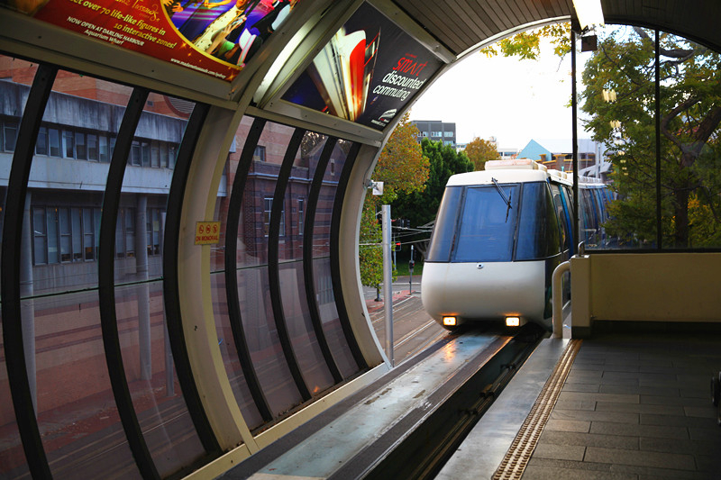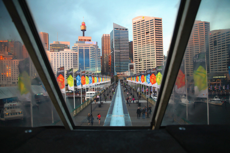 Monorail经过Darling Harbour上空,我在列车尾拍下这张照片,略伤感。。。