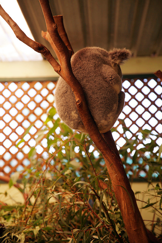 团里有个专业的美国 摄影师,很nice得把他的大炮借我,以下是他的400mm镜头拍摄的同一只考拉,瞬间好大哦 哈哈 只不过这只镜头也太沉了吧