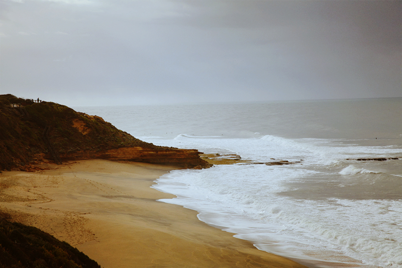 路过一个海滩,想象中大洋路 沿岸的海域应该有清澈的蓝色,可惜天公不作美: