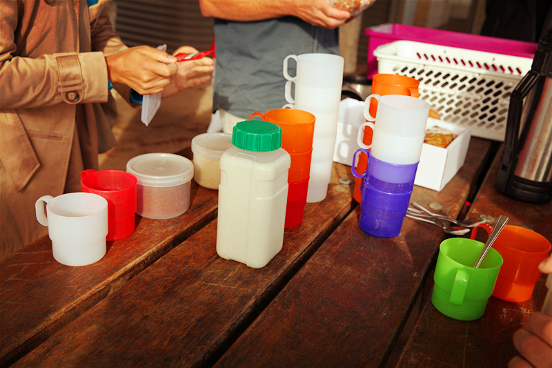接着三下五除二,司机就拿出了放在后备箱的热水瓶、牛奶、咖啡、蛋糕、杯子等等,大家纷纷自给自足了起来~