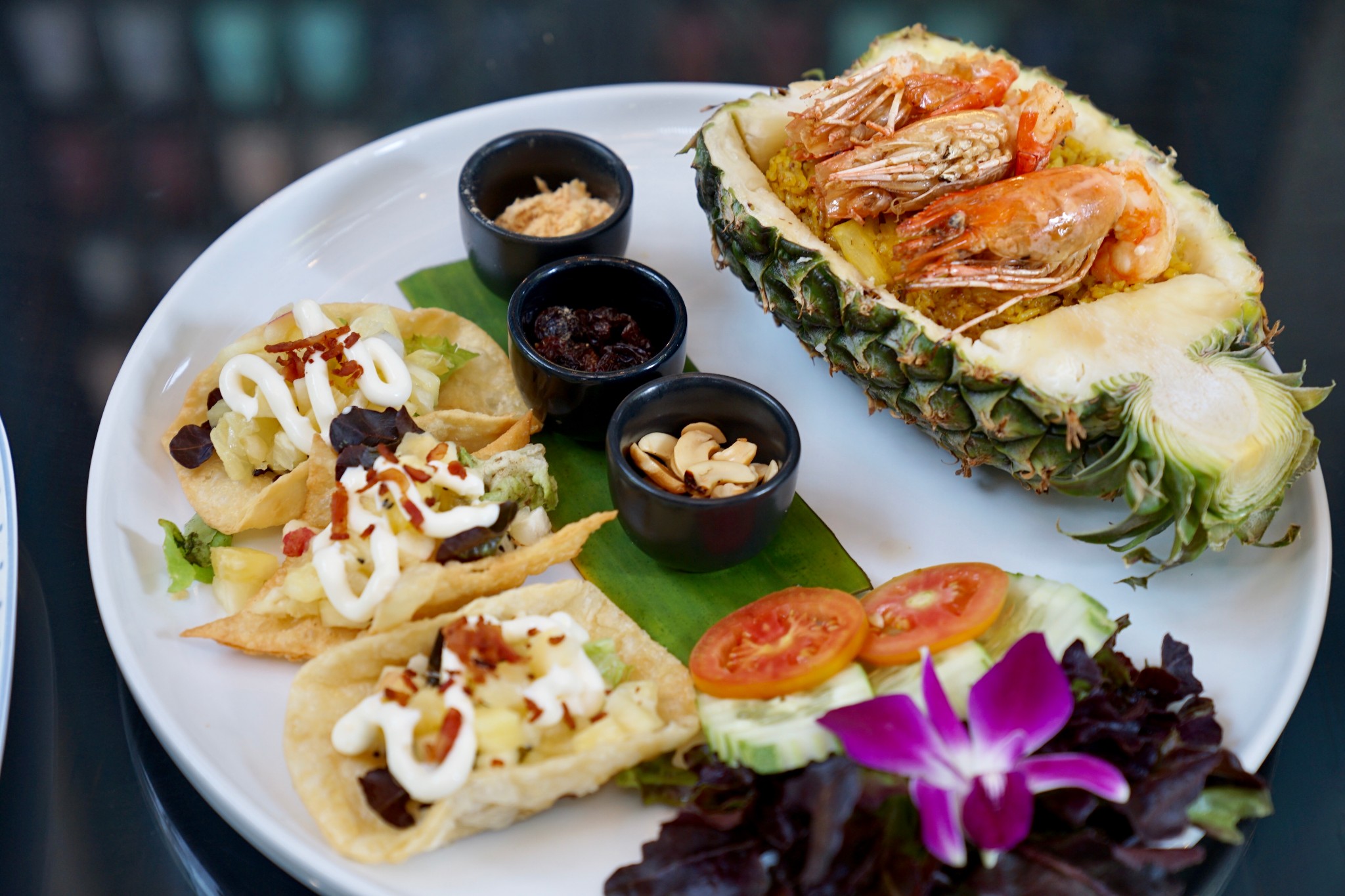 酒店隔壁就有一家特色的泰式餐厅,装修风格和服务都值得推荐。我们的中晚餐基本在这家解决,完全不需要担心孩子是否会吃不惯泰国菜,有些清淡的菜还是很适合小朋友的。
