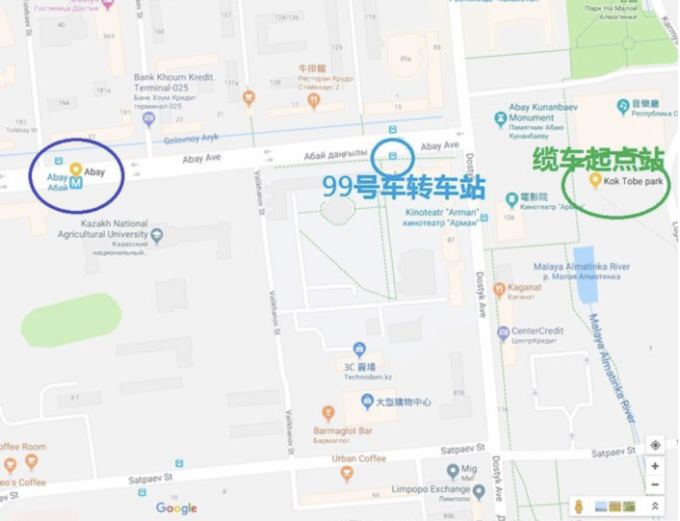 1.从Abay地铁出来,就能看到蓝色建筑,在那坐Kok tobe 缆车。单程1000坚戈/人