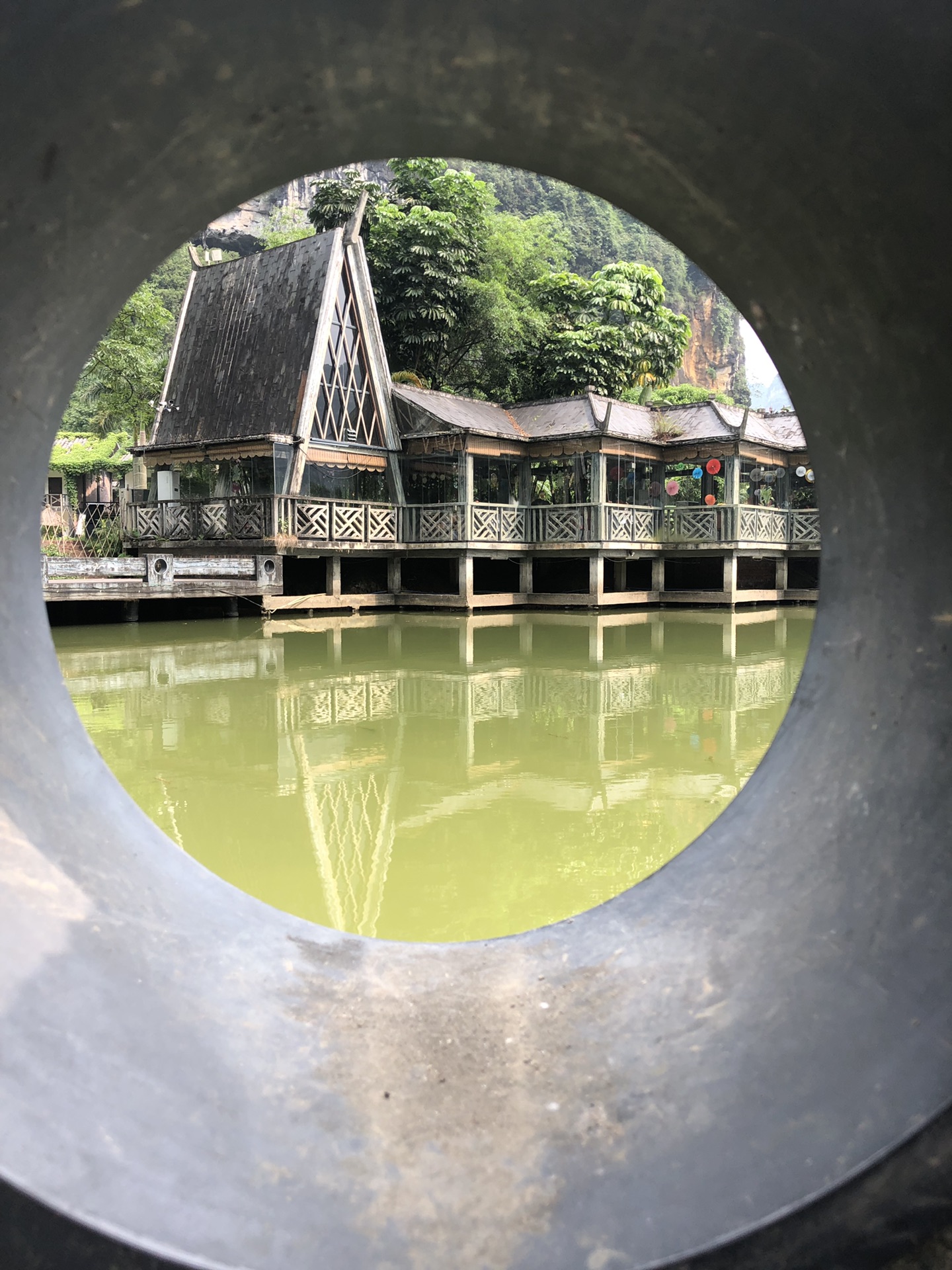 浩浩荡荡的归春河水,从北面奔涌而来,高崖三叠的浦汤岛,巍然耸峙,横阻江流,江水从高达50余米的山崖上跌宕而下,撞在坚石上,水花四溅,水雾迷朦,远望似缟绢垂天,近观如飞珠溅玉,透过阳光的折射,五彩缤纷,那哗哗的水声,振荡河谷,气势十分雄壮。