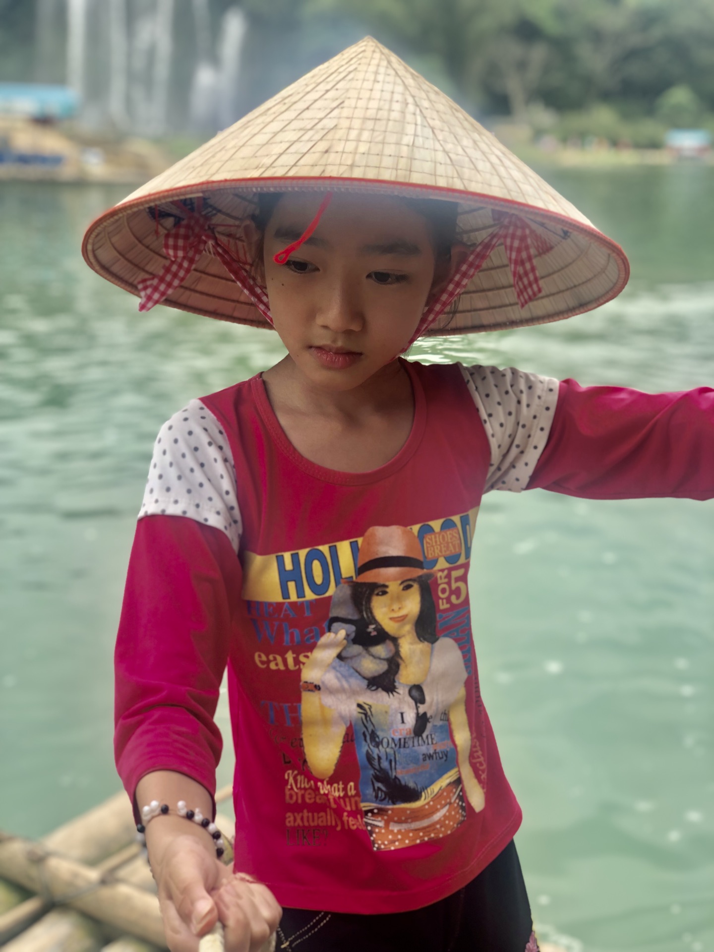 撑竹排的越南小姑娘