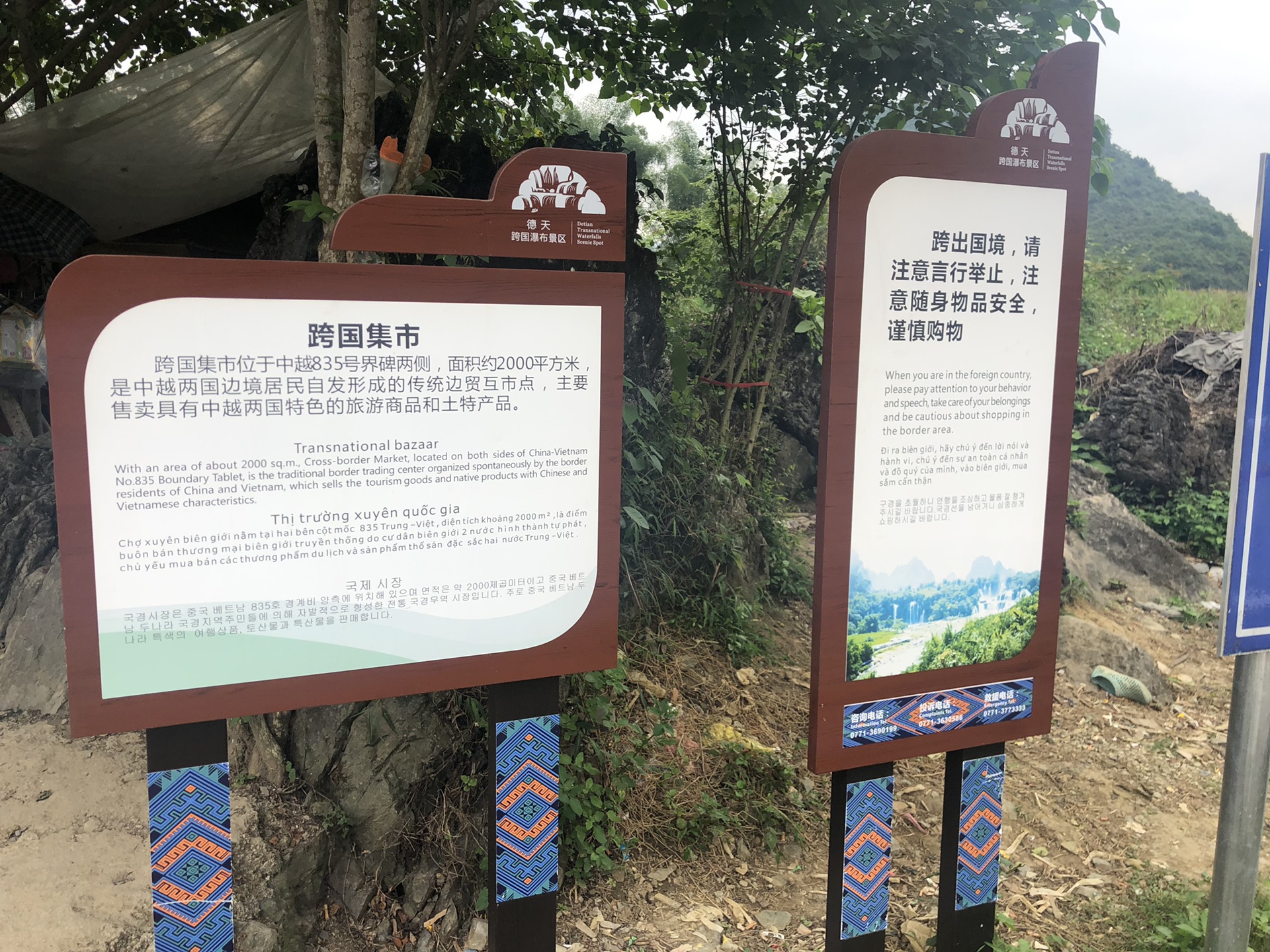 中越边民在瀑布的下游,进行着边贸往来,曾经是肩挑人扛。