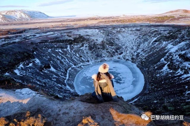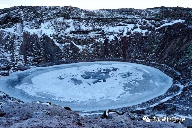 凯瑞斯火山口其实距离南部黄金圈非常近,大家可以一起游览。比较有意思的是由于是冬季,整个火山口都结起了厚厚的冰层,就这样火山口也变成了小朋友们的溜冰场。