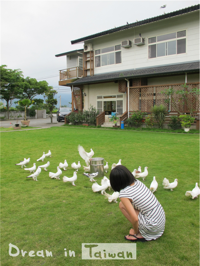 这家民宿离市区有些距离,独门独院,环境清幽,我们选择了一间小复式。之前订房时并没有提及接送,晚上九点半到,电联老板娘就找车来车站接我们,和司机兼“店小二”小野聊了一路。花莲 几乎没有公交车,第二天晚上去自强夜市 也是小野特意载我们过去,省了不少打车钱,真的很感谢~去太鲁阁、七星潭 包车也是老板娘帮忙联系的,还有最后一天上午出海赏鲸,在她这里订票会相对便宜。除了热心肠,老板娘做的早餐也相当给力,两天早上的还略有不同,一次是自制三明 治,一次是蛋包饭,搭配各种水果,牛奶、咖啡、果汁、红茶自选,总是吃得饱饱才出发。而且她家有个萌妞,一旦跟你混熟就拉着你各种拍照,大眼睛长睫毛,萌的人心都化了,美人胚子啊~~~临走那天早上还有个小小的惊喜,他家养了好多鸽子,小野喂鸽子叫上我们一起,抓一把五谷杂粮鸽子就呼啦呼啦冲过来,胳膊上一下落了好几只,几乎快撑不住,它们还挺胖的哈,一点都不怕人,最后我们的手臂都被抓的一道道血印,不过这种经历还蛮新鲜的,疼也值啦!至于价钱嘛,因为是7人间,上下两层复式小别墅,周五5600NT一晚,周六6500NT。