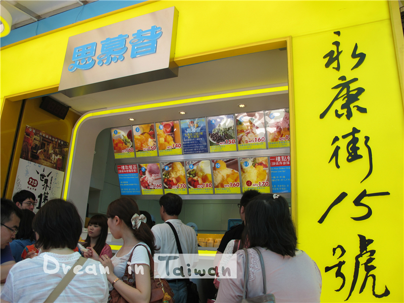 距离台北 永康 牛肉面一个路口远的街角有家思慕昔芒果冰 ,在台北 的旅游小册子上也有介绍,是最有名气最好吃的一家芒果冰。我们抵达台北 那天温度高得让人崩溃,吃完牛肉面跑去来一份手工鲜奶酪芒果雪花冰,大块大块诱人的芒果伏在一大碗绵绵冰上,令人垂涎欲滴,手工奶酪的搭配无论从卖相还是味道上都使其更加完美。这家店生意好到等半天也没有位置,只好站在路边开吃,又是一家份量足到几个人吃一碗都会撑的冰品店!据说一天最多卖出去3000碗冰,简直太逆天了!
