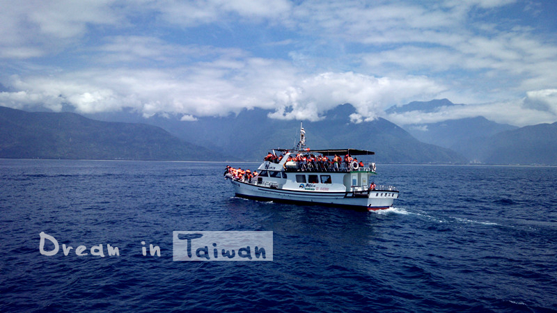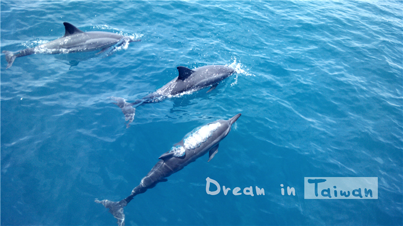 然大海千变万化,我最爱它亲近和缓的一面。大海不可预约,但值得期待~恰好我们出海那天风平浪静,海天一色,成群结队的飞旋海豚随船竞逐,不时跃出海面,表演腾空的绝技,还有海豚妈妈带着海豚宝宝游来游去,透过澄碧的海水轻而易举便看到它们每一个细微的动作。全速前进时站在船头乘风破浪,忽上忽下,好不刺激!我们乘坐的赏鲸船多罗满号,是花莲 港最大的赏鲸船,最多可以乘坐八十多人,去之前和出海时都有海洋基金会的志愿者导游讲解,全程两到三小时,700NT/人,有车从民宿直接送往港口,结束后又把我们送到火车站。出海赏鲸是民宿老板娘帮忙预定,比自己直接购票便宜,原价1000NT/人。