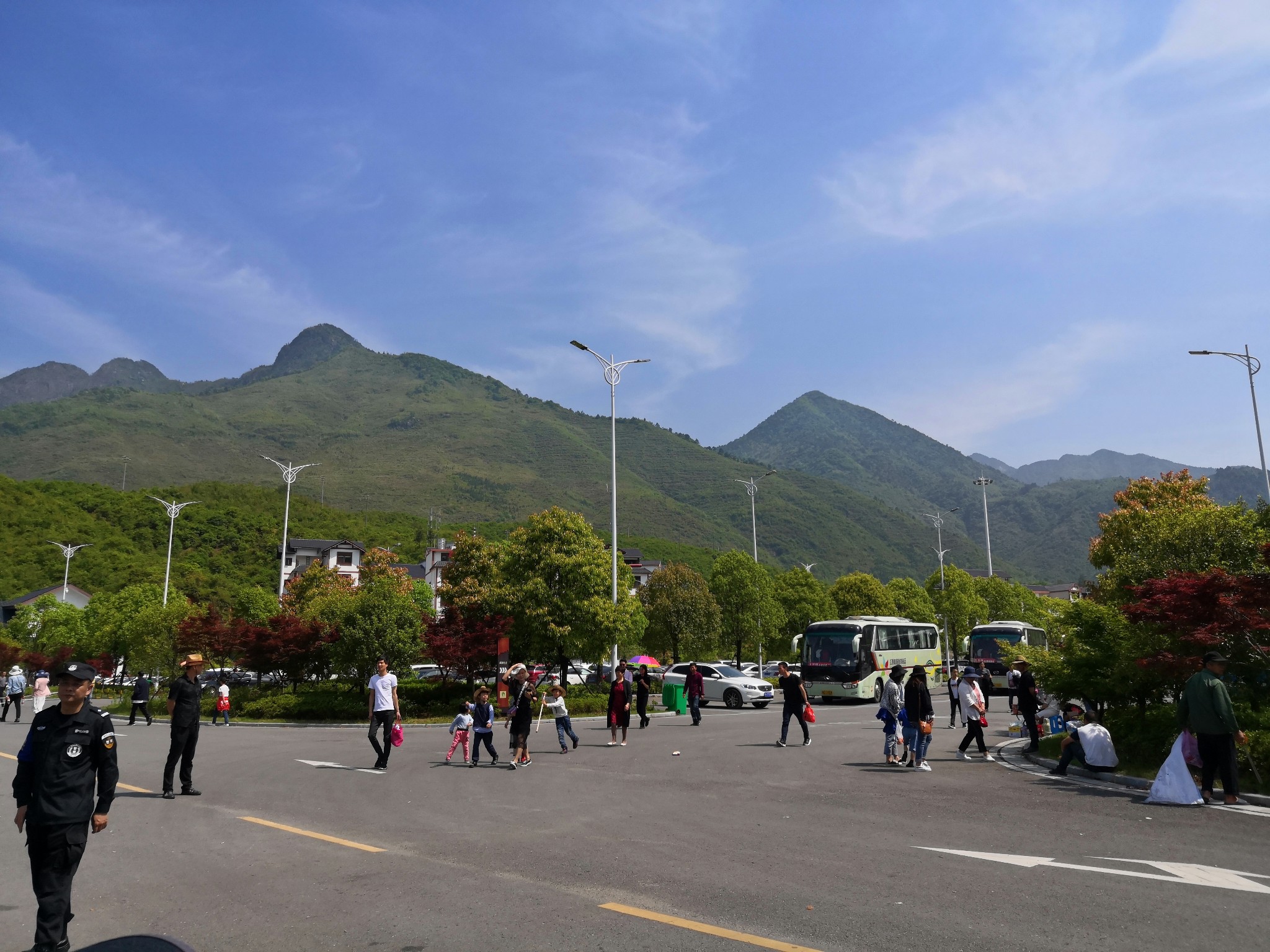 下高速走了一段,在快要上盘山公路的最后一个十字路口,有交警设置了路障,不让前进了。所有自驾车辆都被引导到了枫林停车场停车,停好车后向工作人员询问,平时自驾车辆是可以上山的,因为五一假期原因,自驾车辆太多不让上山了(除部分订好了山上酒店的车辆),所以都停在山下的枫林停车场,再由景区的免费大巴转运至外双溪服务区游客中心(南门)。三清山景区这个措施相当好,避免了上山堵车和停车的问题,也省却了我们的担心。