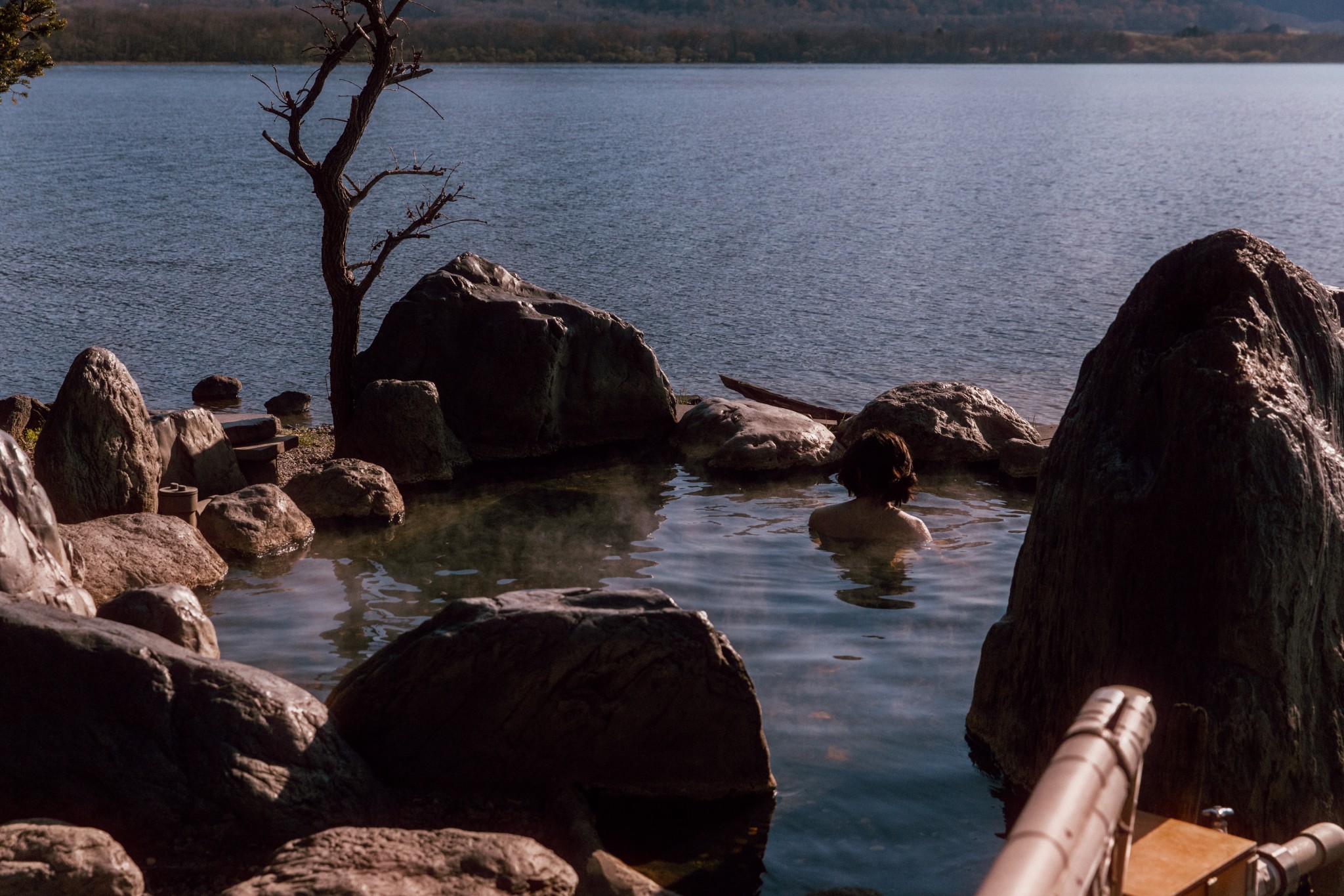 失落之外在温泉里得到了补偿,在湖边有一个露天风吕,叫古丹温泉,下去之前几番确认是不是全裸,在求证过当地人之后我们终于壮了壮胆子,收下屈斜路湖赠与的最后一份惬意。