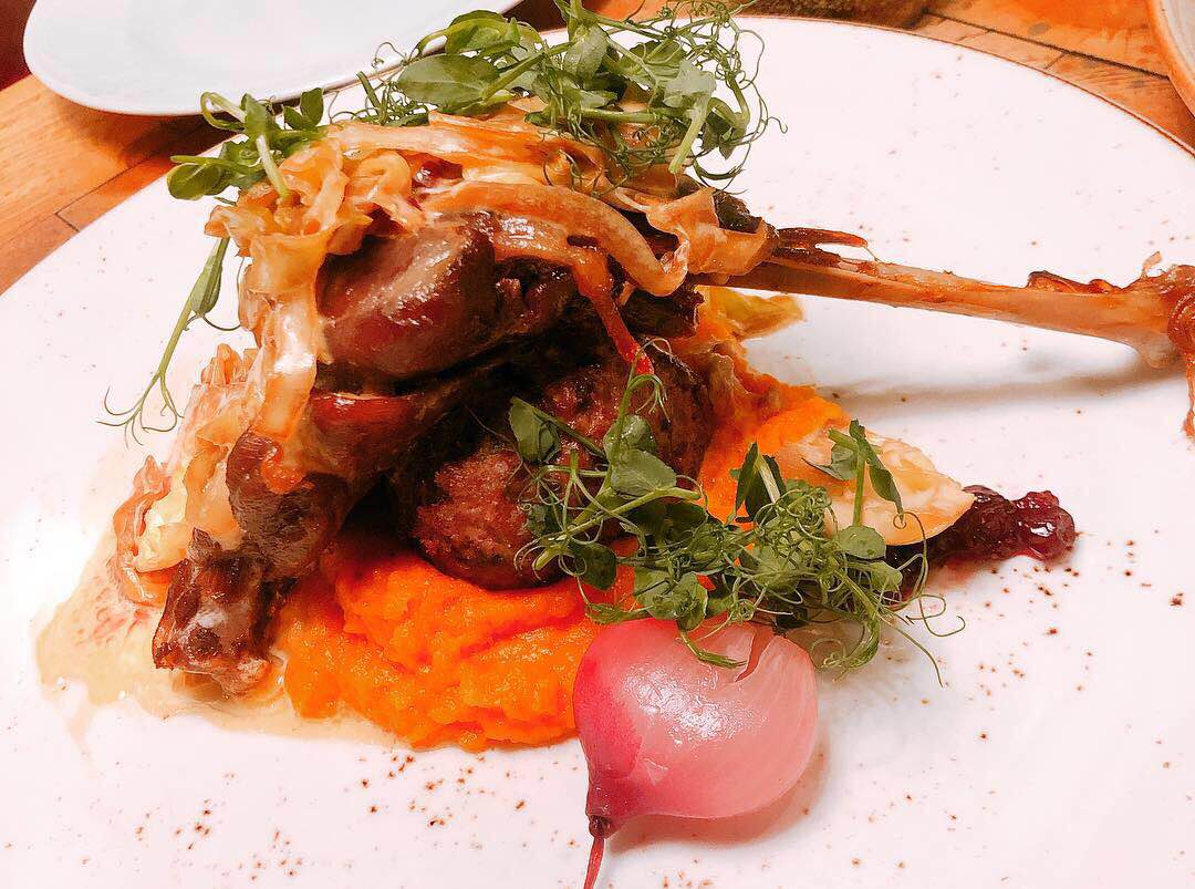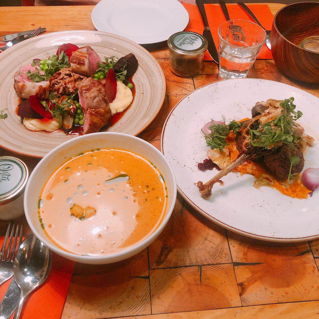 意外地没有踩雷,每一份都很好吃。羊肉烤到5分熟,中间还能看见红肉,口感鲜嫩,一点都没有羊膻味,连我这种不爱吃羊肉的人都完全可以接受。鸭腿肉很有嚼劲,是咸香口感,里面的红薯泥拌上汤汁口感绵密。海鲜浓汤略咸但是胜在里面的食材丰富,虾仁扇贝三文鱼都有很多。这些菜三个人吃刚刚好。我觉得这家餐厅是我在北欧11天里吃过的最好吃的一家了,推荐!
