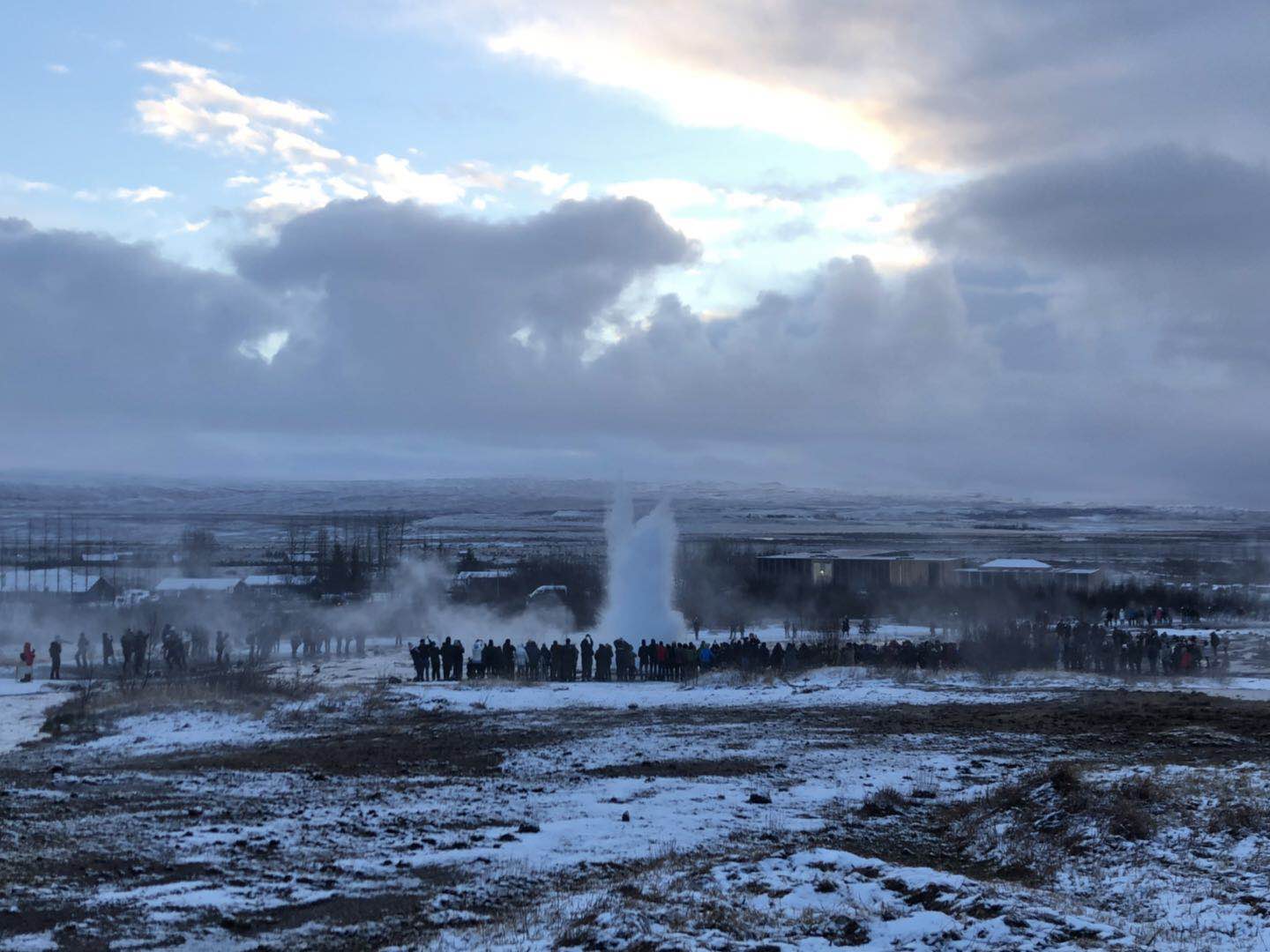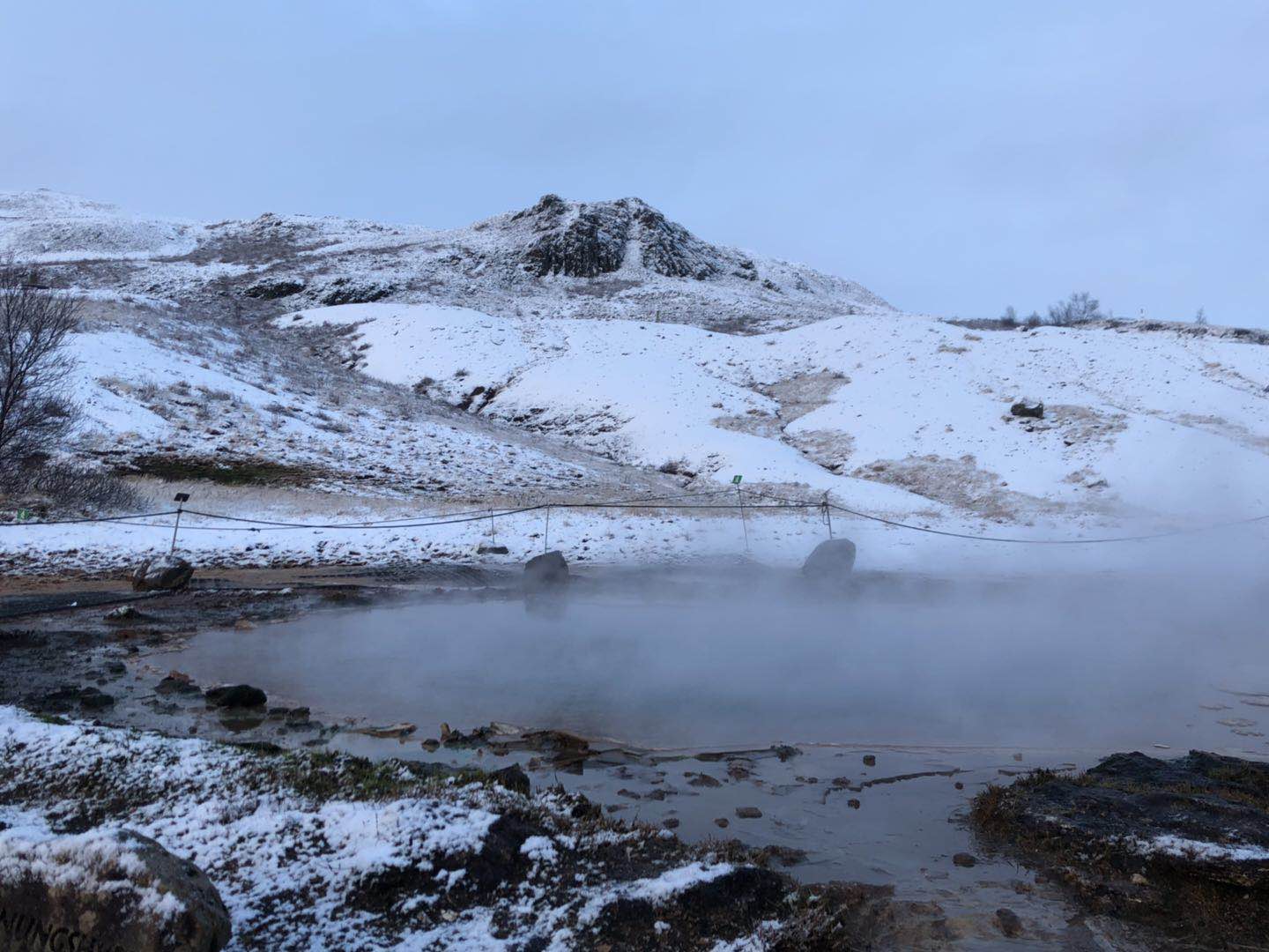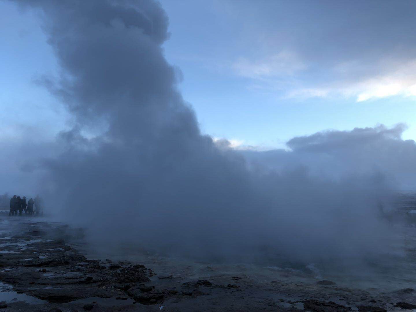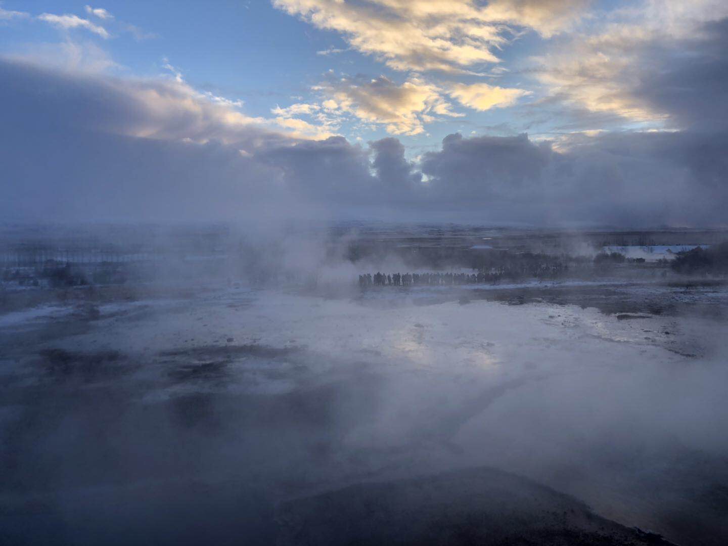 黄金瀑布往下游走20分钟就是黄金圈里最有名的间歇泉。顺着越来越浓郁的硫磺味就能走到了。