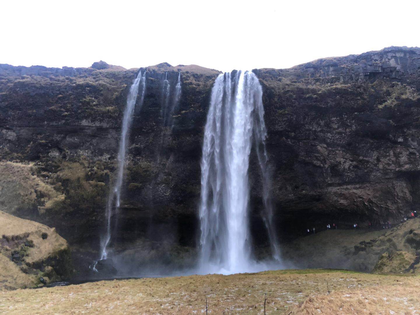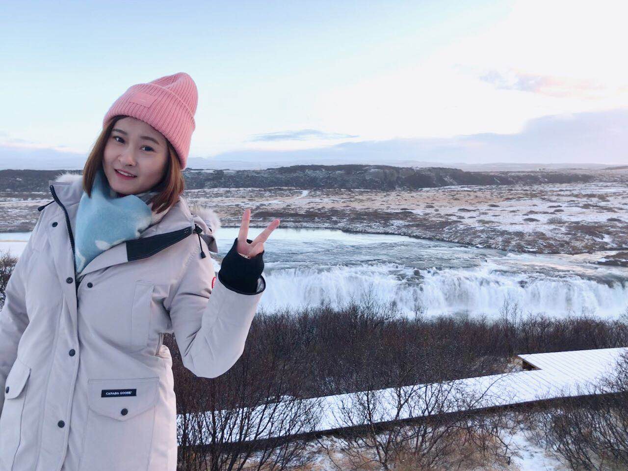 车子再向南行驶40分钟就到了黄金瀑布。冰面与巨大的水幕擦肩而过,带出了冰冷刺骨的水汽扑面而来,冻得人瑟瑟发抖牙齿打颤。