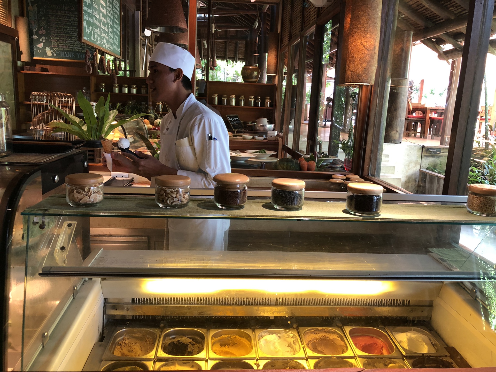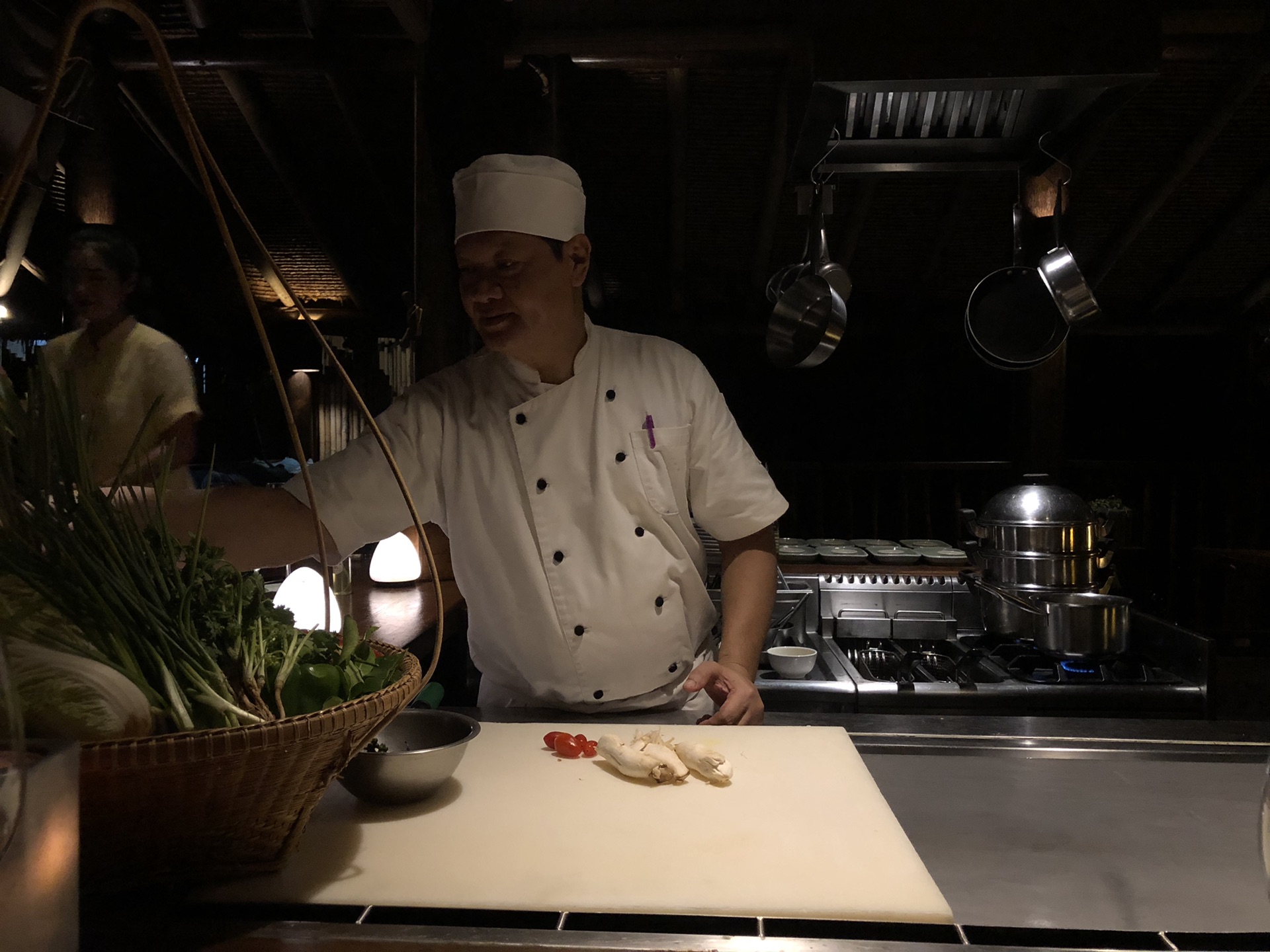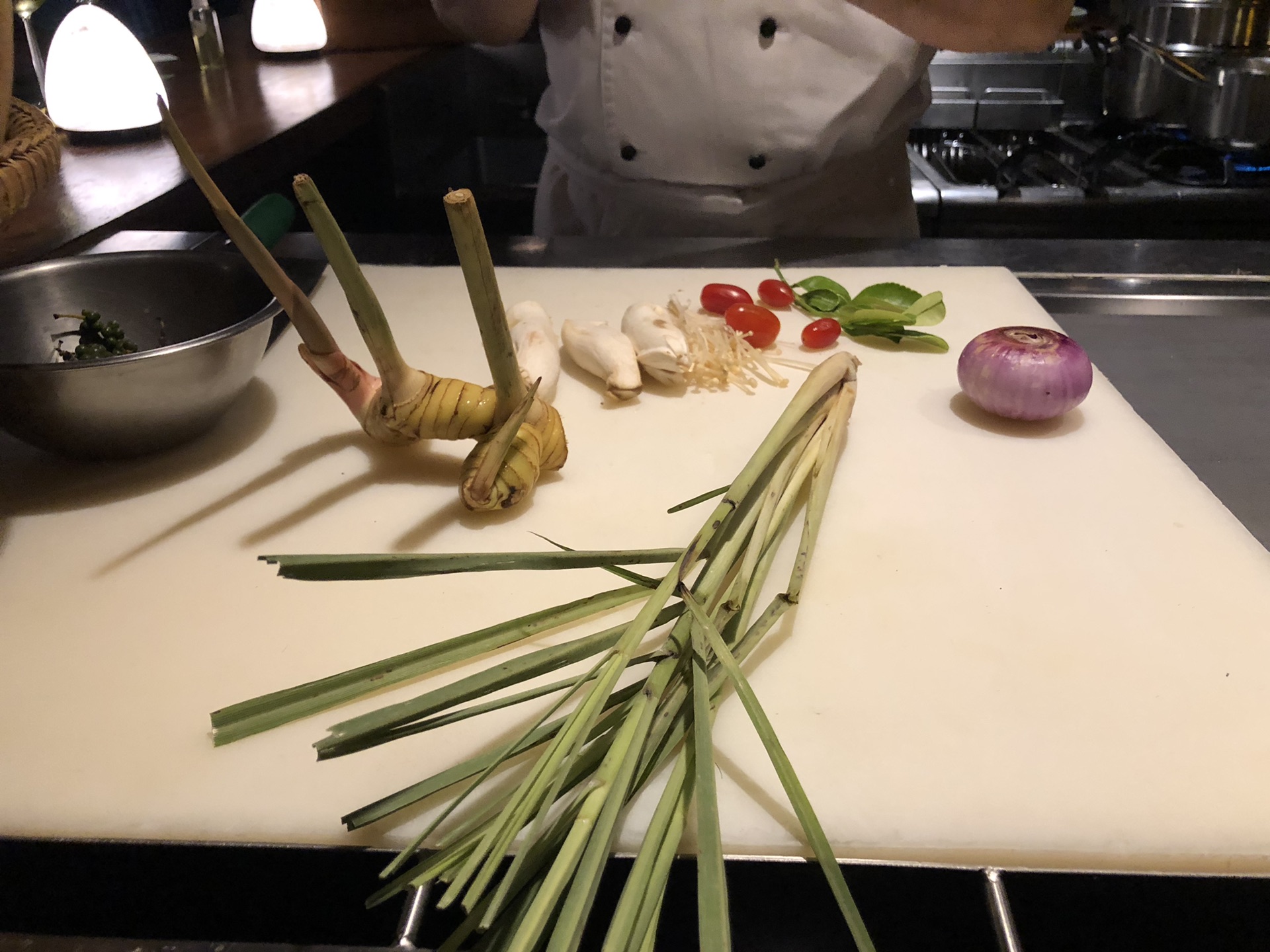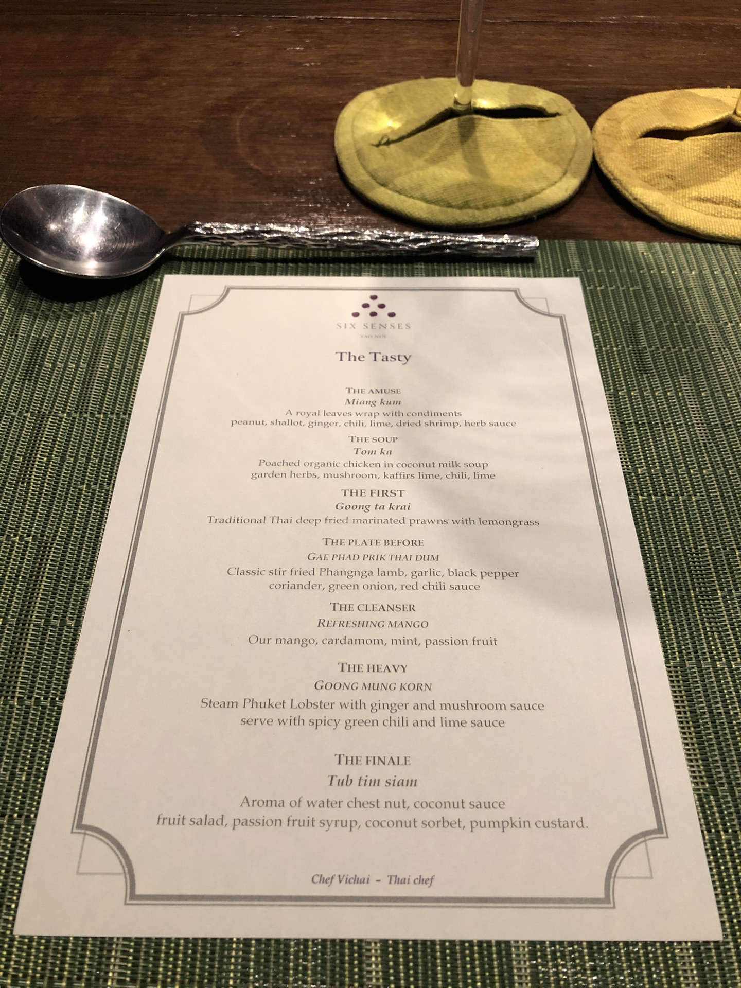晚上的泰餐只能容纳8个人,很幸运我们定的时候还是available的~ 吃饭的过程中聊天知道这个大厨已经从事这个行业20年了,之前呆过很多国家,去传播泰式美食,有迪拜、新加坡、马尔代夫等等,现在回泰国来六善刚刚1个月