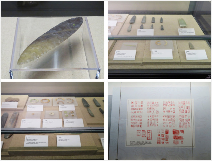 左上:新石器时代的桂叶形石器,小南山遗址出土,通体压琢,可能是礼器,是目前国内发现的最大一件压制石器。
