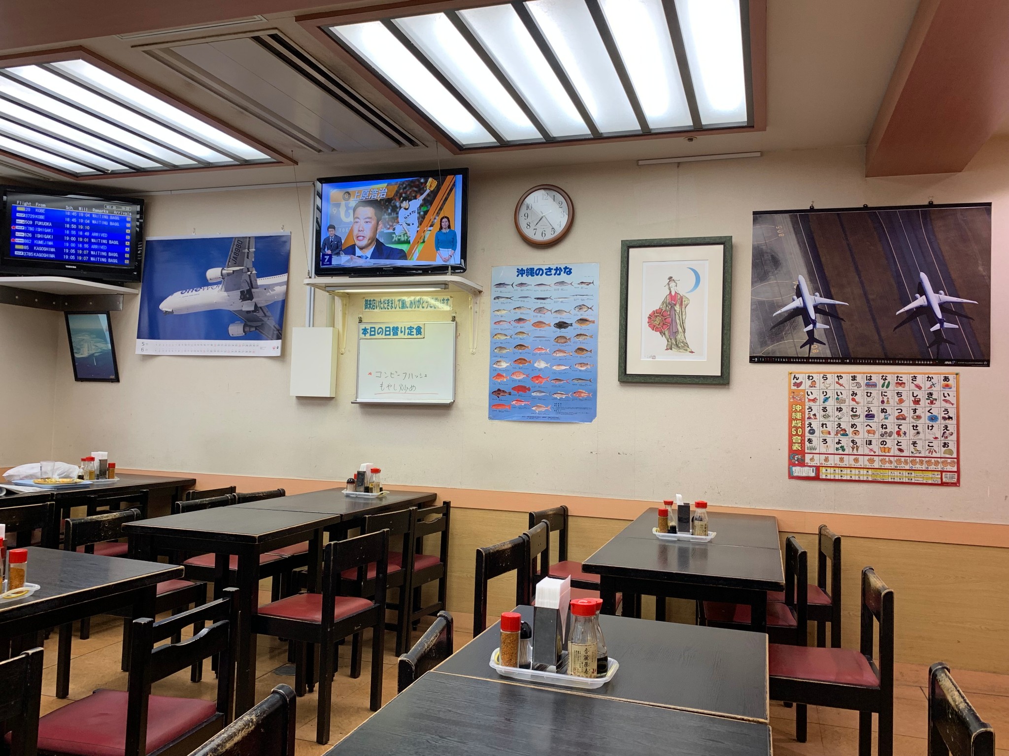到达冲绳已经是6点半了,我们决定在机场吃好再去宾馆。选择了机场里的空港食堂,点了一个亲子套餐和冲绳荞麦面,味道相当对得起价格,才1140日元。就是亲子套餐里有些鸡皮比较怪。空港食堂由于在国内出发的一楼,基本都是日本游客和机场工作人员来就餐,环境比较简朴。