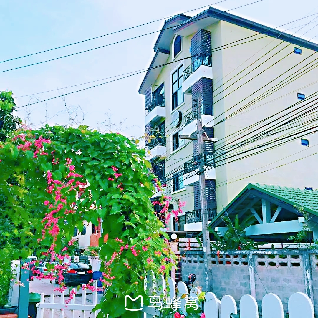 这栋粉到炸裂的洋气小楼,安安静静的隐藏在清迈大学后门的居民区里。周围有很多素色的学生公寓楼,每天就这样被学生们年轻活力的氛围环绕~