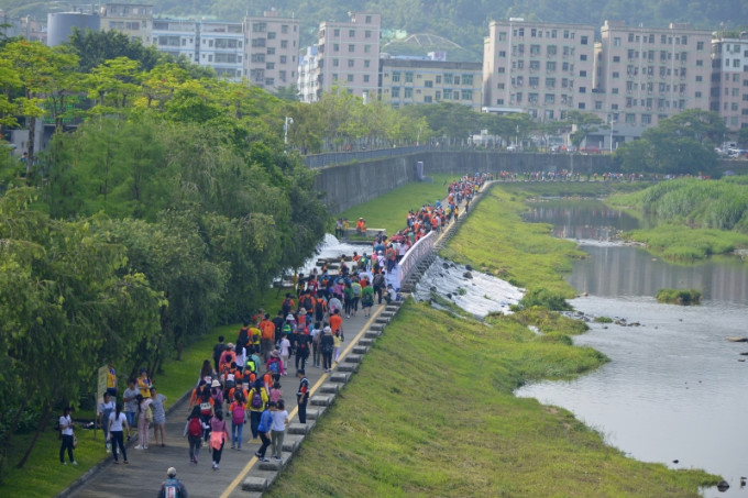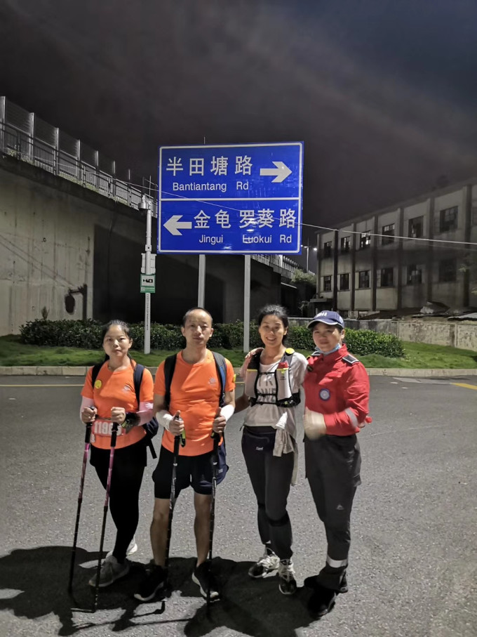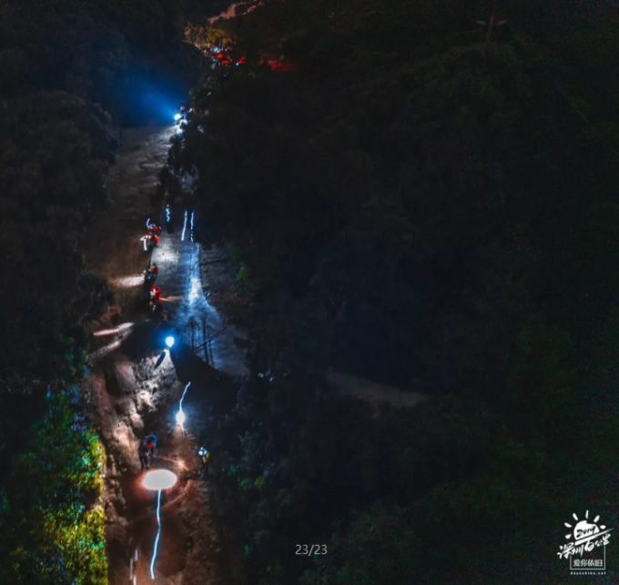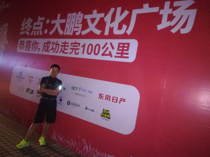 ——“深百呀,就是一群驴(可能有点蠢)在30+摄氏度下浩浩荡荡地踏过深圳的大马路,飞奔跨过一座大山。再从海湾边上咆哮而过,又开始向另一座大山进发。朝发大运城,送走烈日当空,迎来蛙声几许。最终或于子夜鼾声正浓时,或于朝霞再现时抵达百公里之外的大鹏之城。史称深圳百公里大YUE进!”