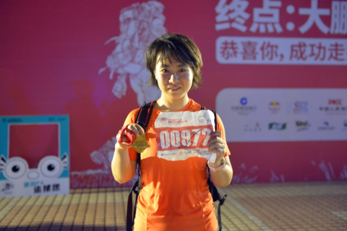 “为了完成目标,为了拿到奖牌,这次百公里我走到怀疑人生,生无可恋!身无可恋!后面28公里我走到崩溃,竟然花了我7个小时!我得好好想想怎么记录这次记忆深刻的百公里”