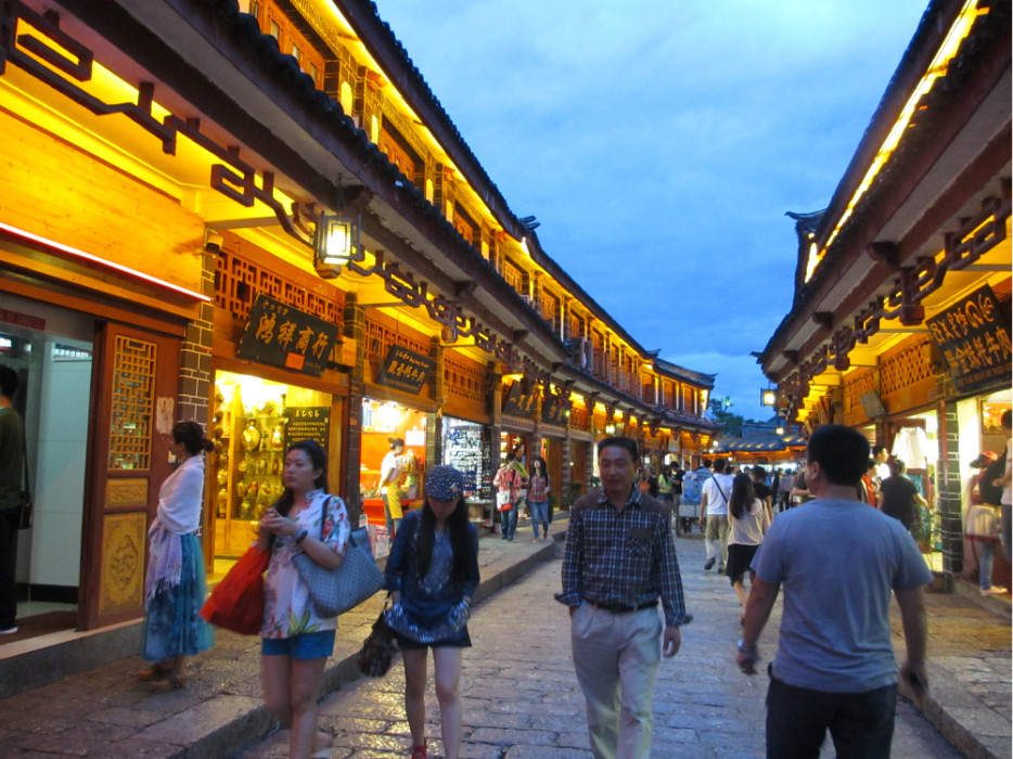 古城给我的感觉是:有点繁忙。因为大研比束河更早成为旅游景点,所以可以看到大街小巷都是人,路上的旅客忙着逛街,买东西,店内的老板忙着叫卖,看店。